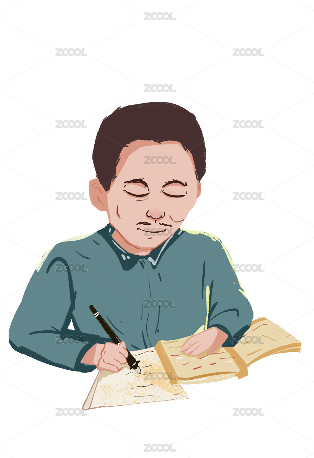 一个正在学习的老人简约插画