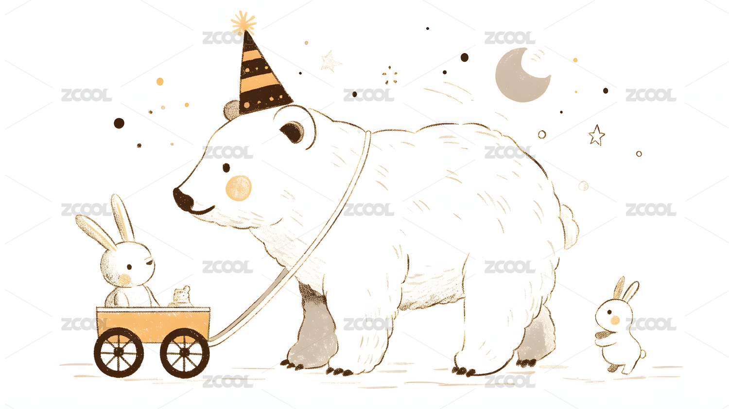 棕色小熊推车插画