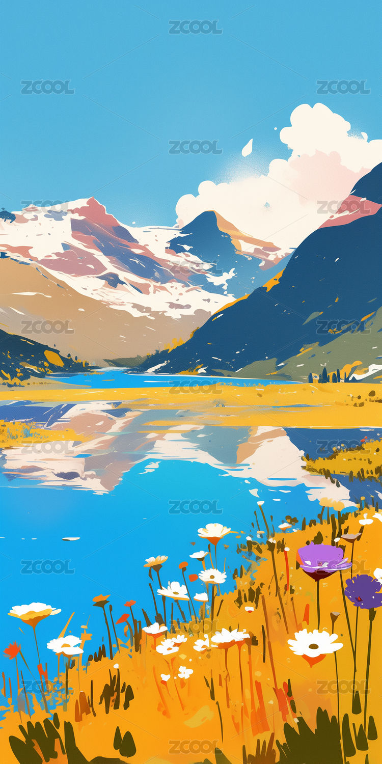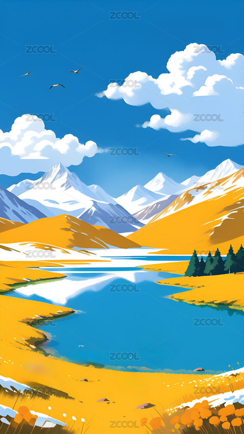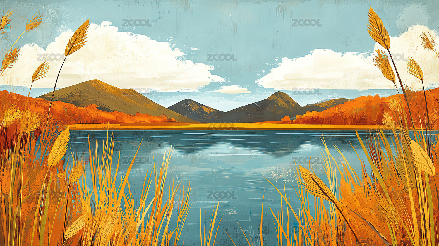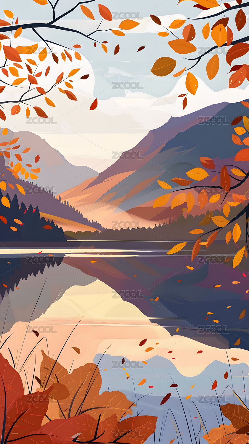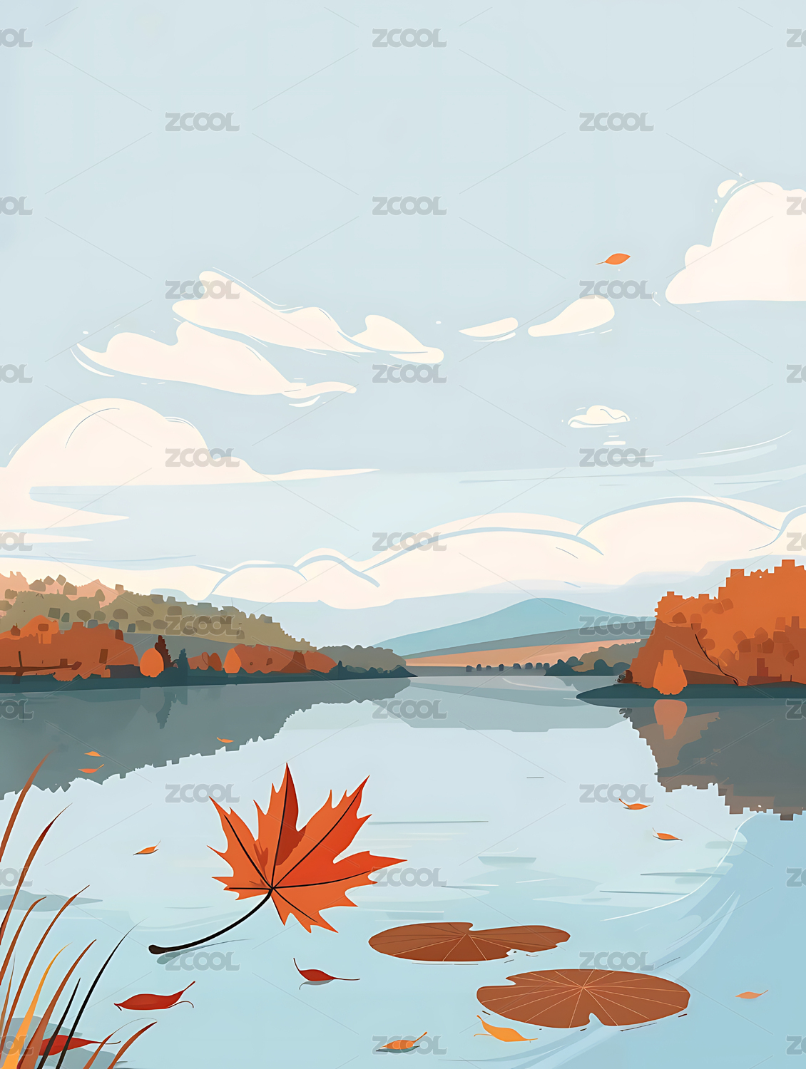 AIGC202402,扁平,水彩,秋天,写意,户外,风景