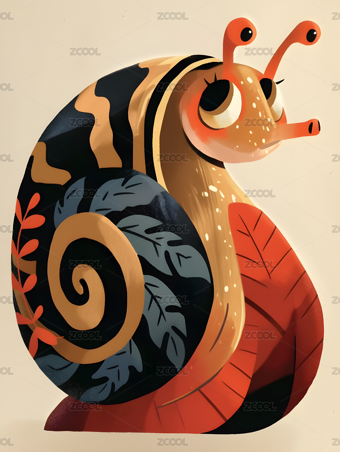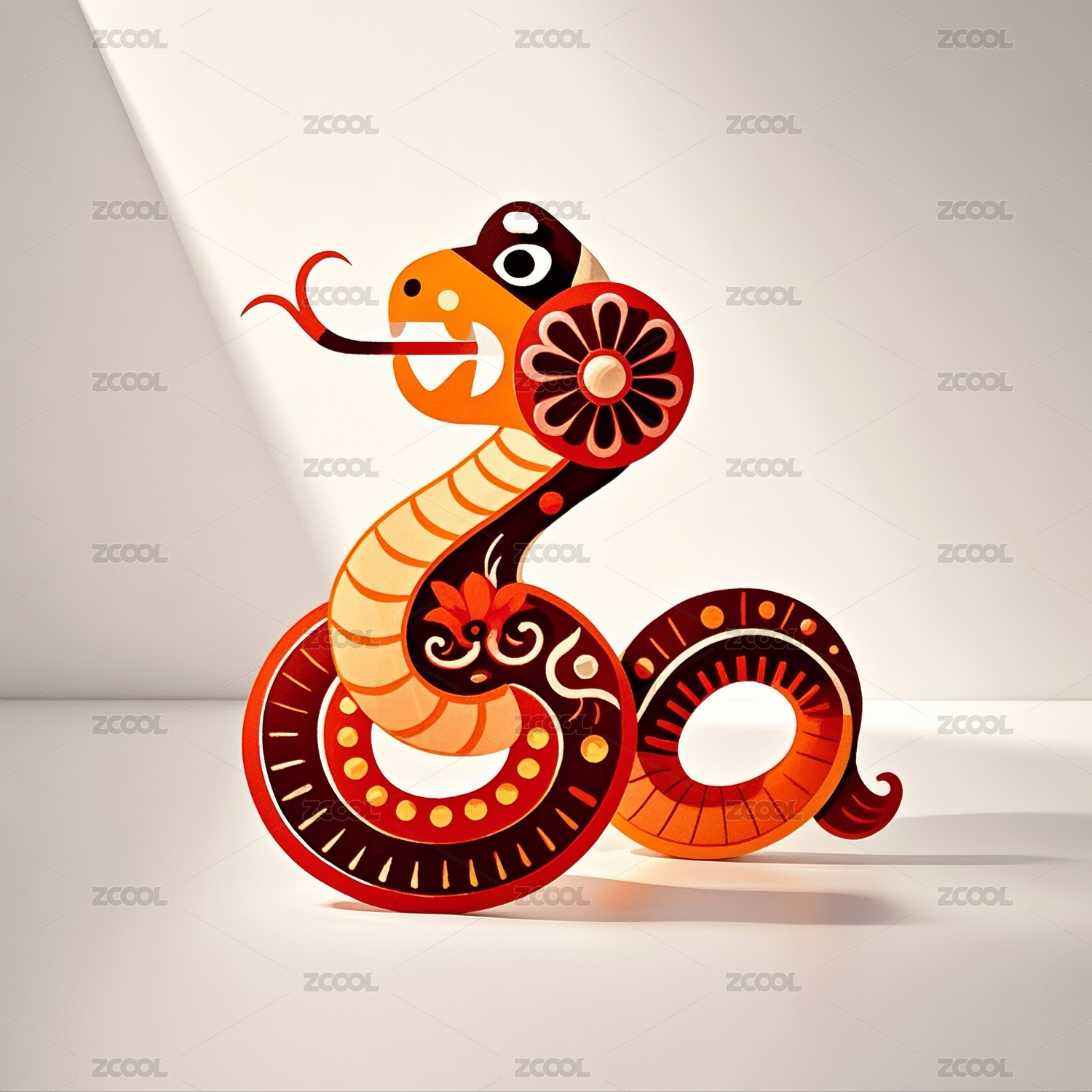 皮影风格的蛇图案造型