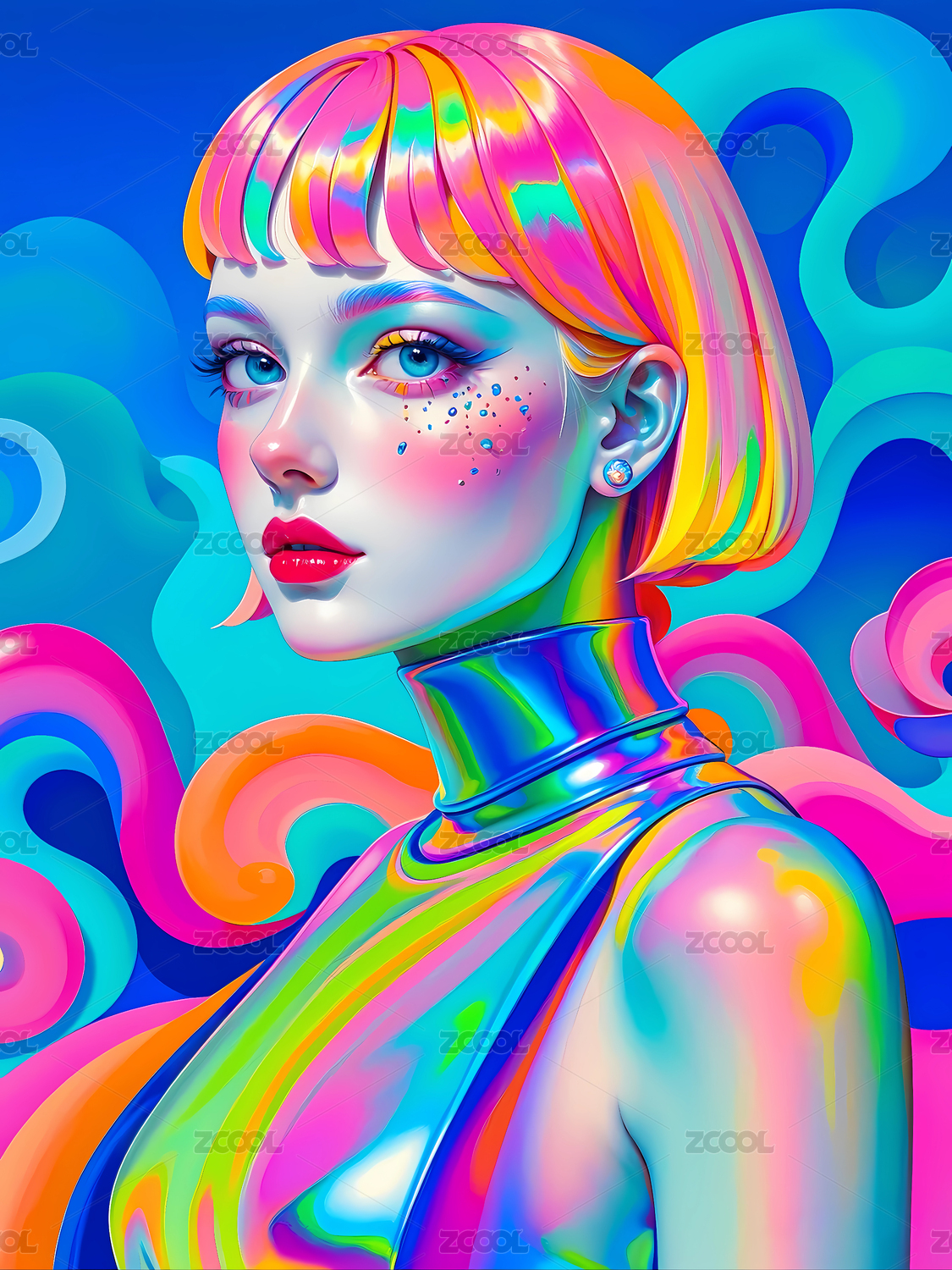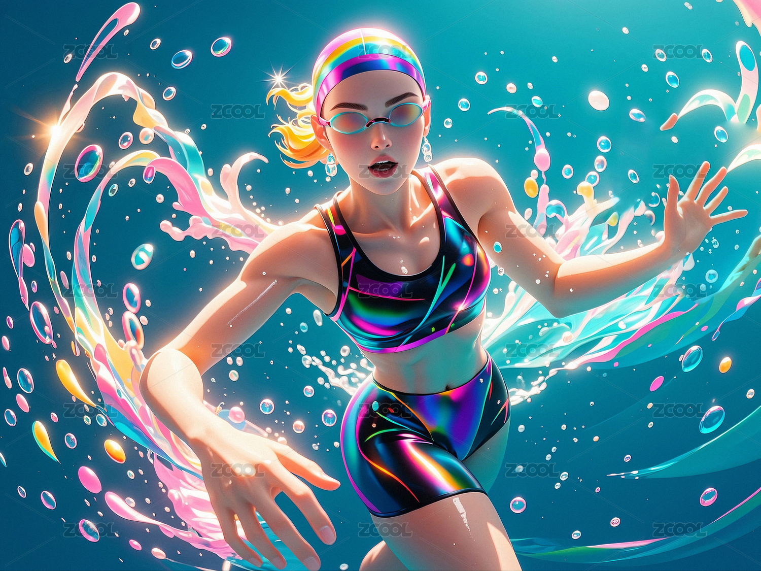 全息箔,玻璃,彩色,炫彩,彩虹,镜面,AIGC202401,运动,游泳,水