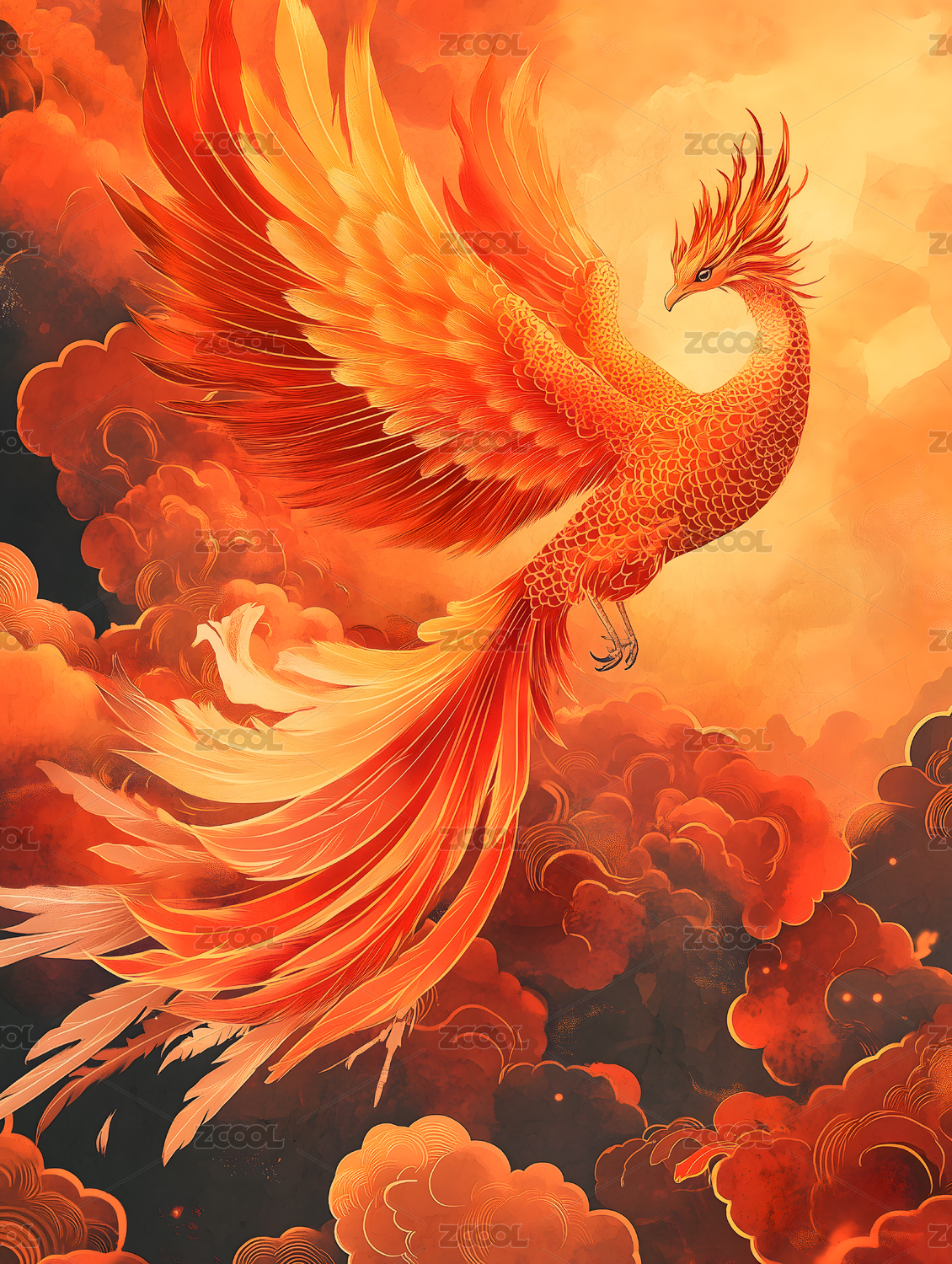 火红,凤凰,传统文化,中国神话,壁纸,插图,背景图,唯美,神兽,国潮