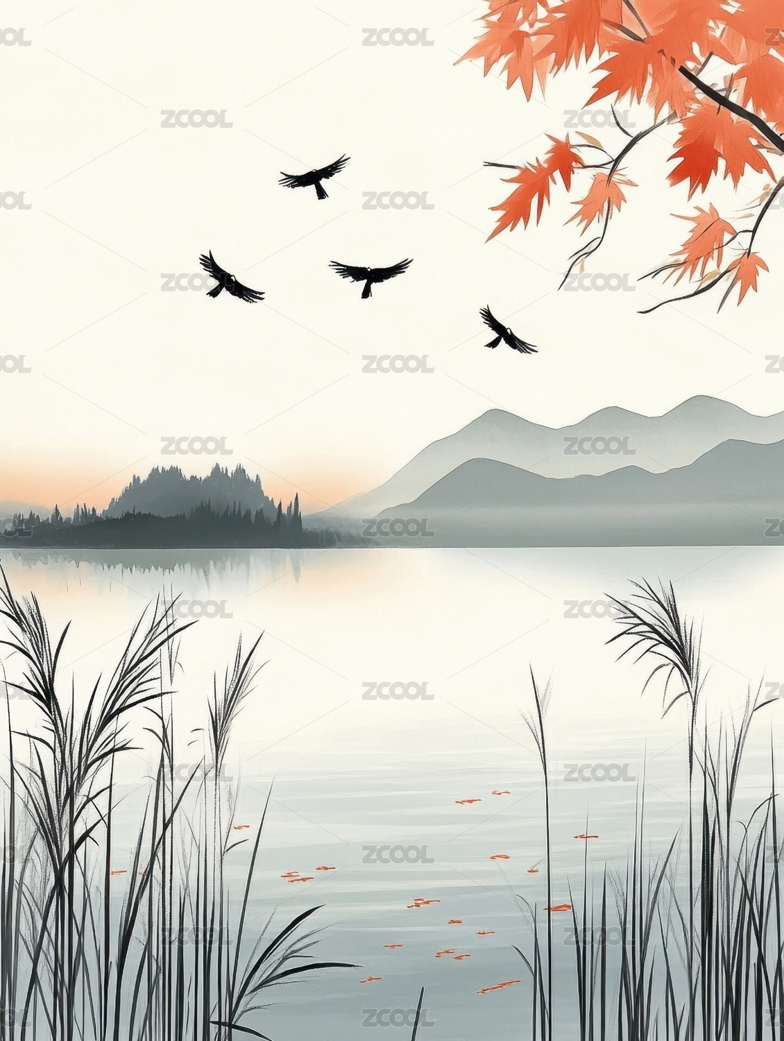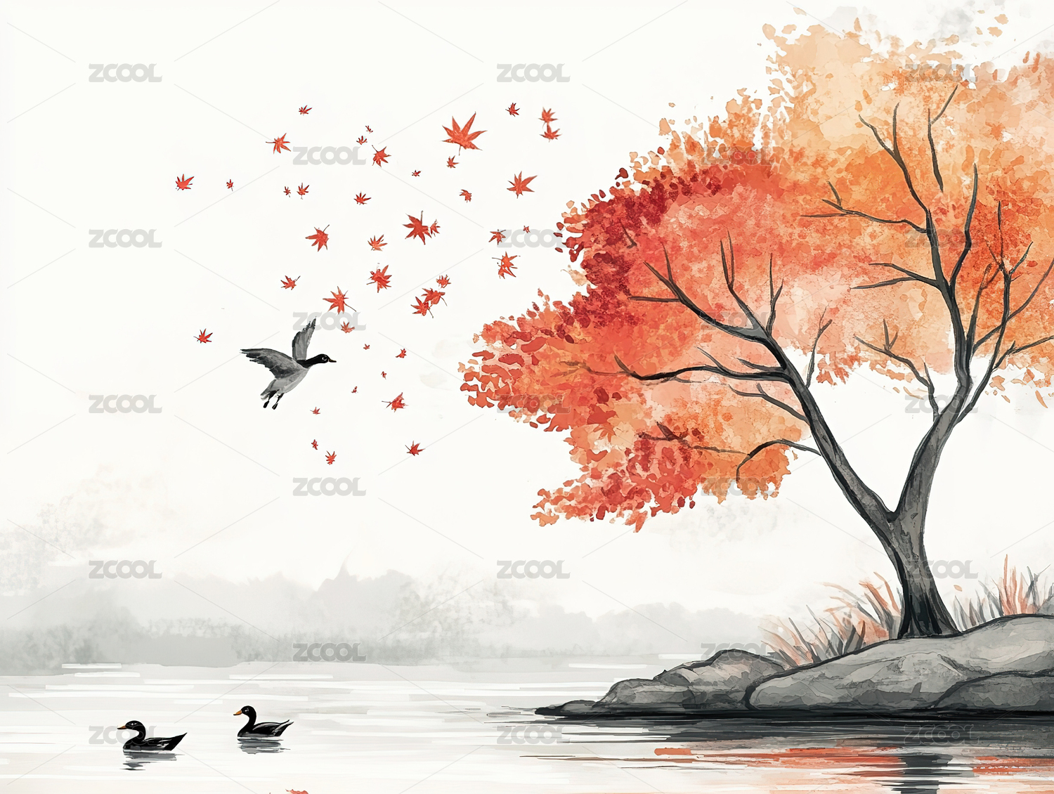 水墨写意秋景图