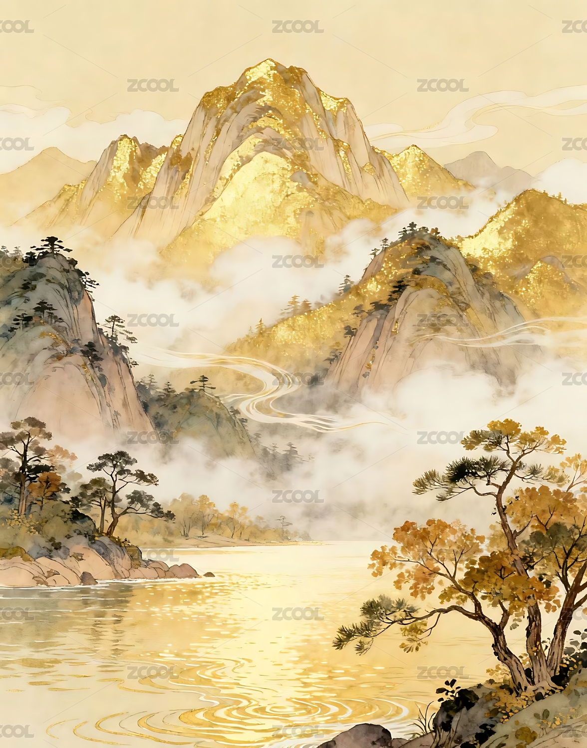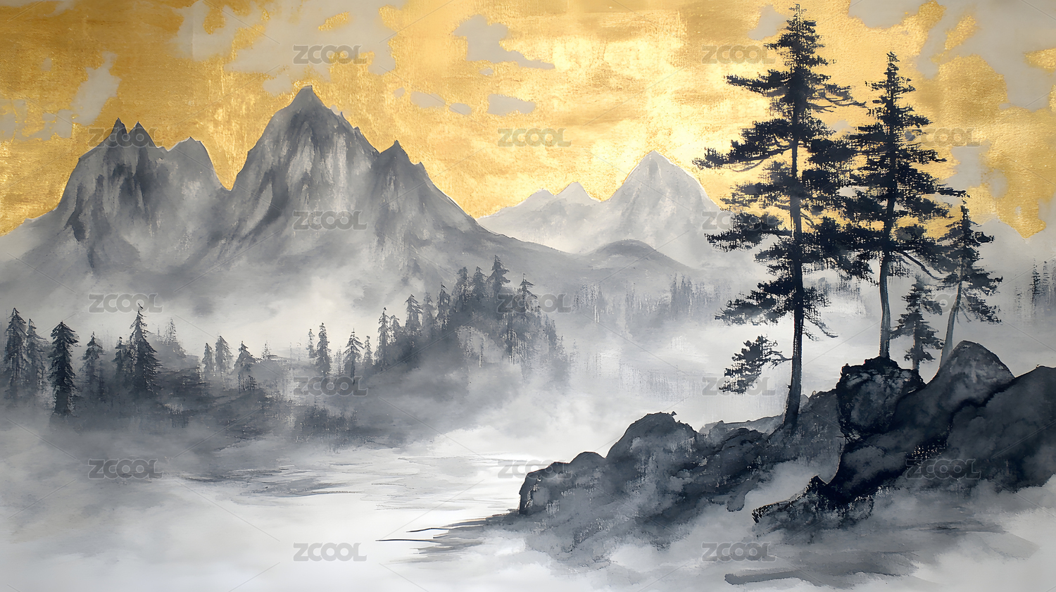 背景,渐变,概念,抽象,中式,山水,金色,复古,传统,国风