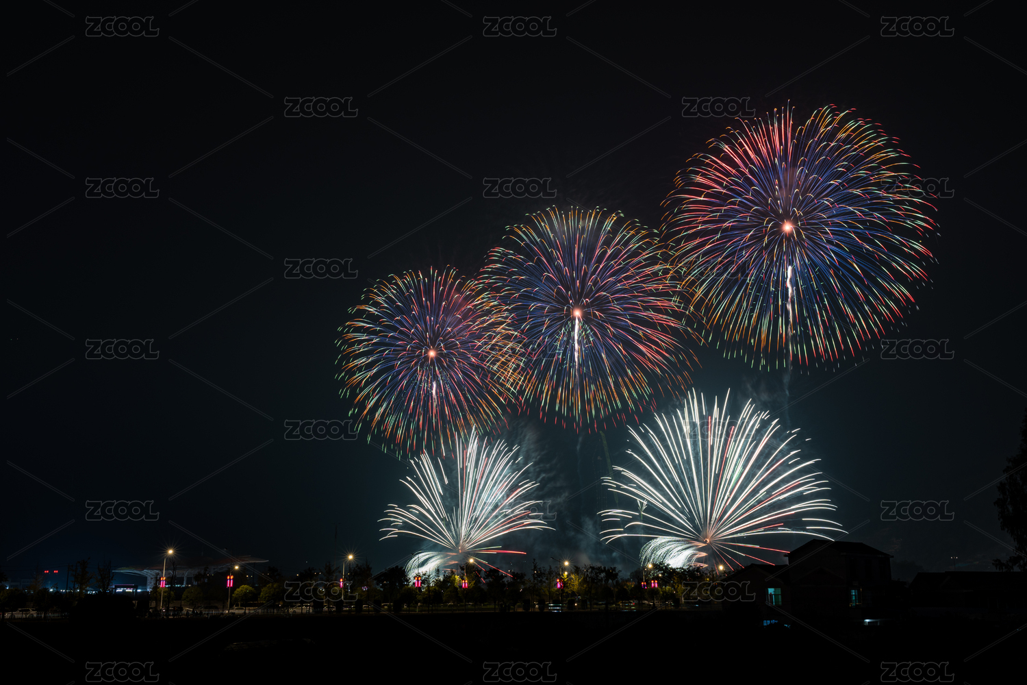无人,焰火,庆祝,夜晚,天空,放焰火,城市,户外,光,长时间曝光