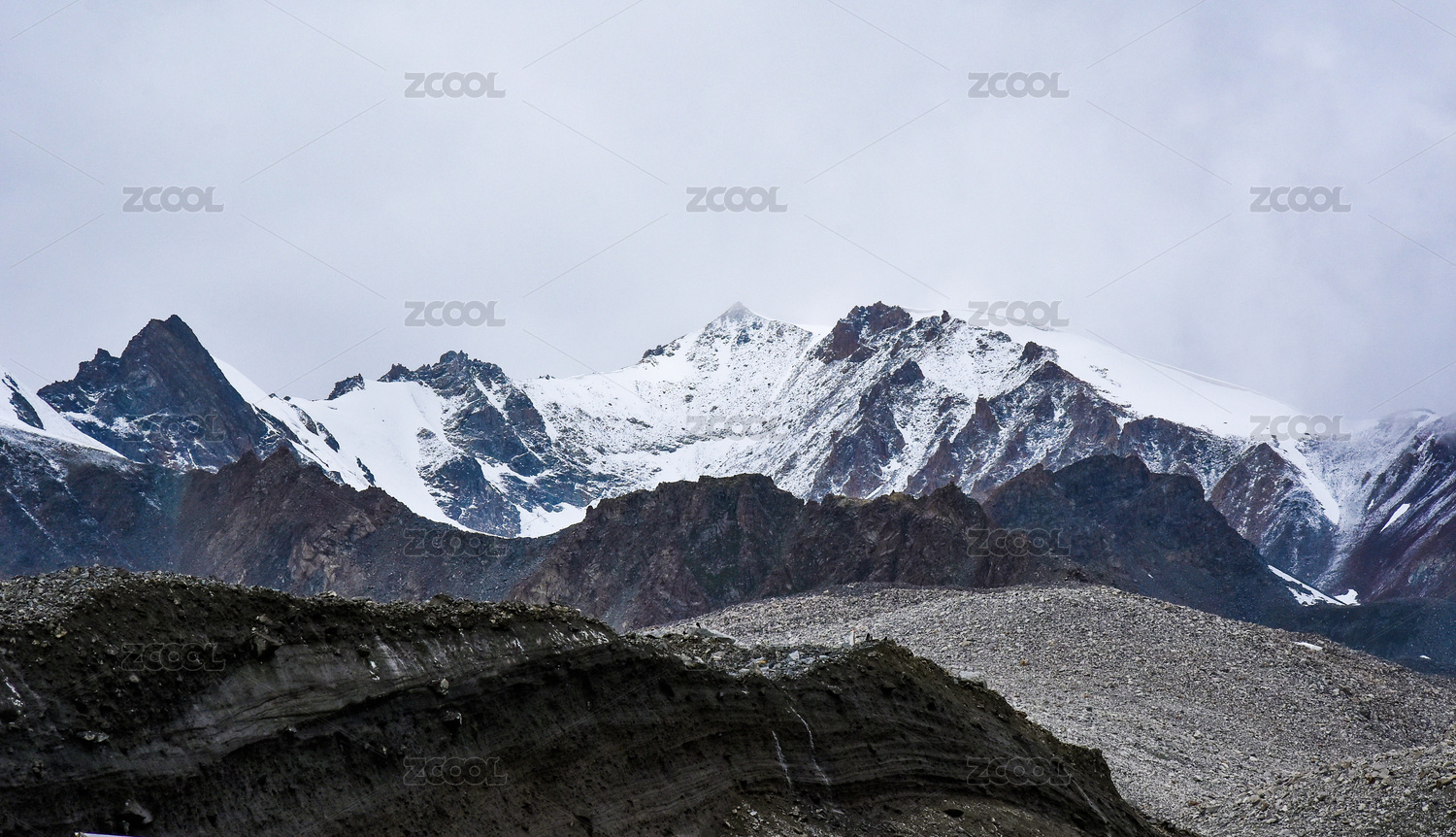 中国青藏高原山脉上的冰川与积雪