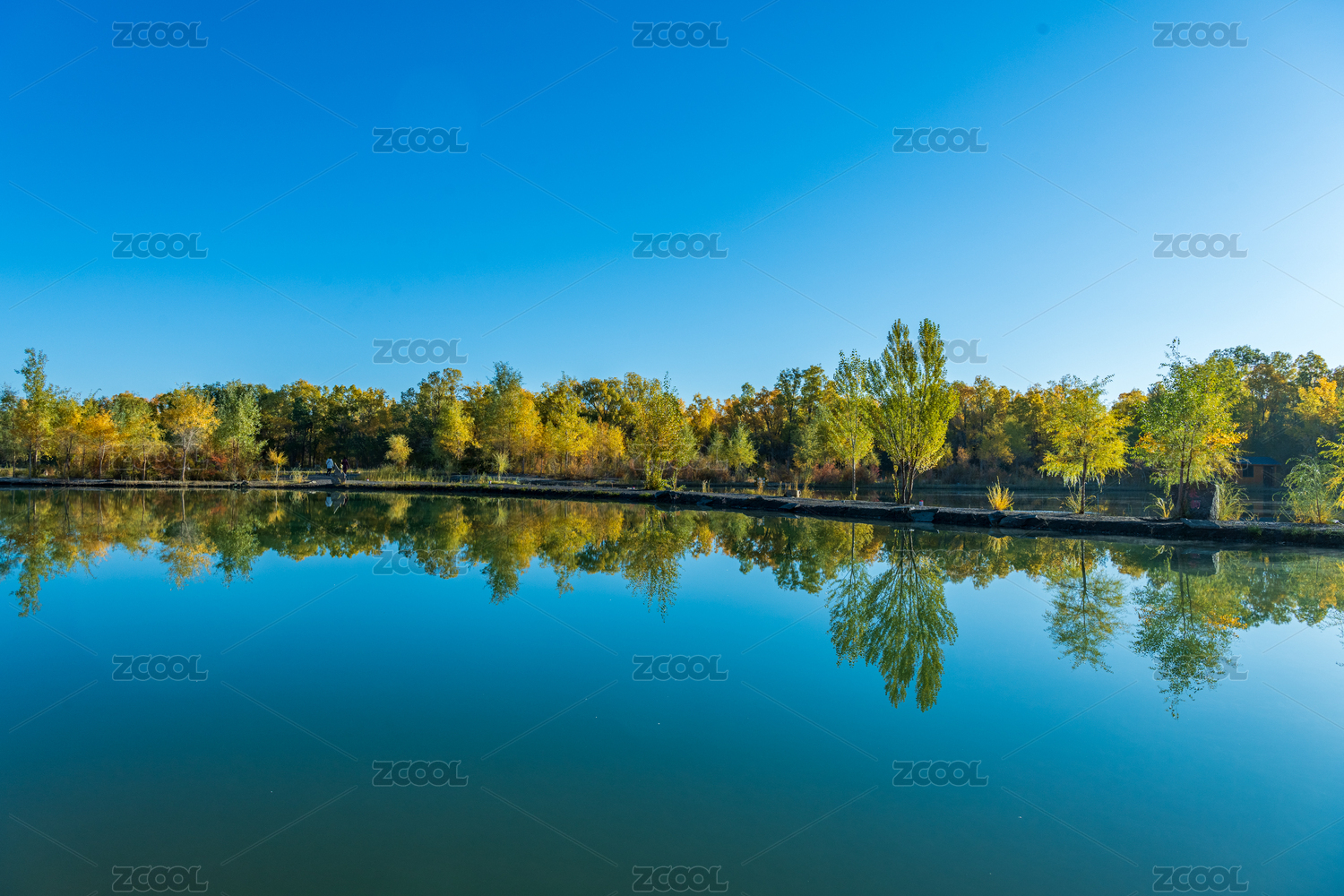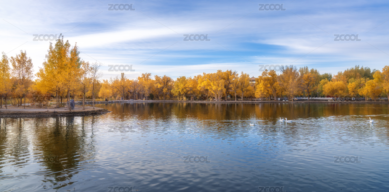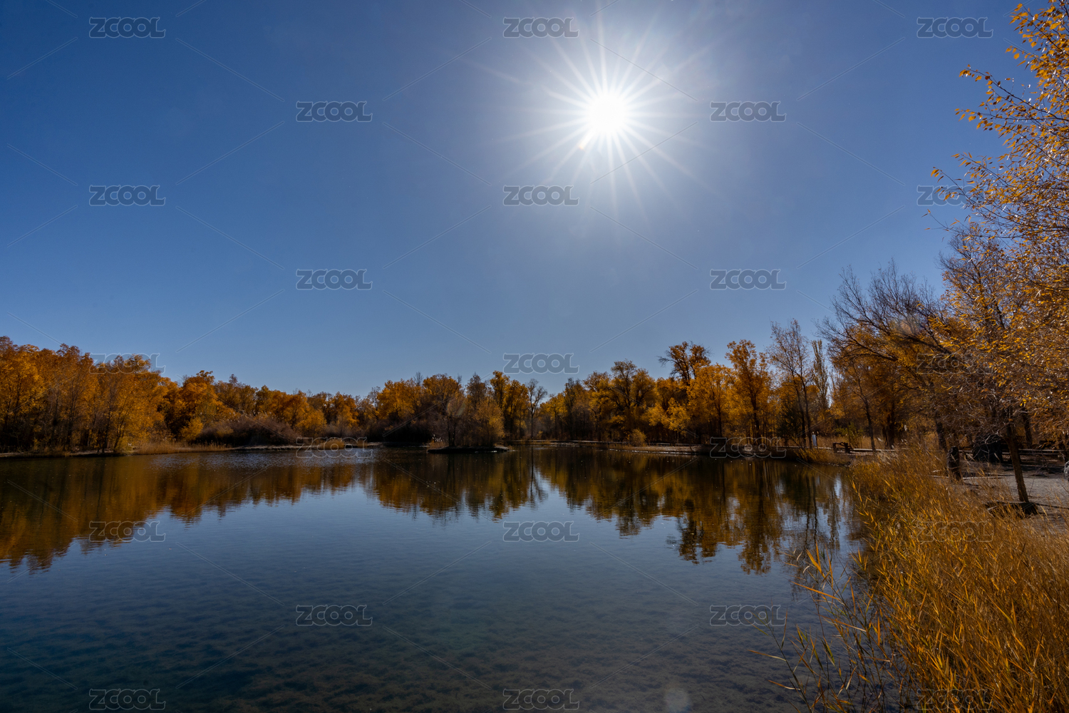 甘肃省酒泉市金塔县胡杨林和金波湖秋天风光