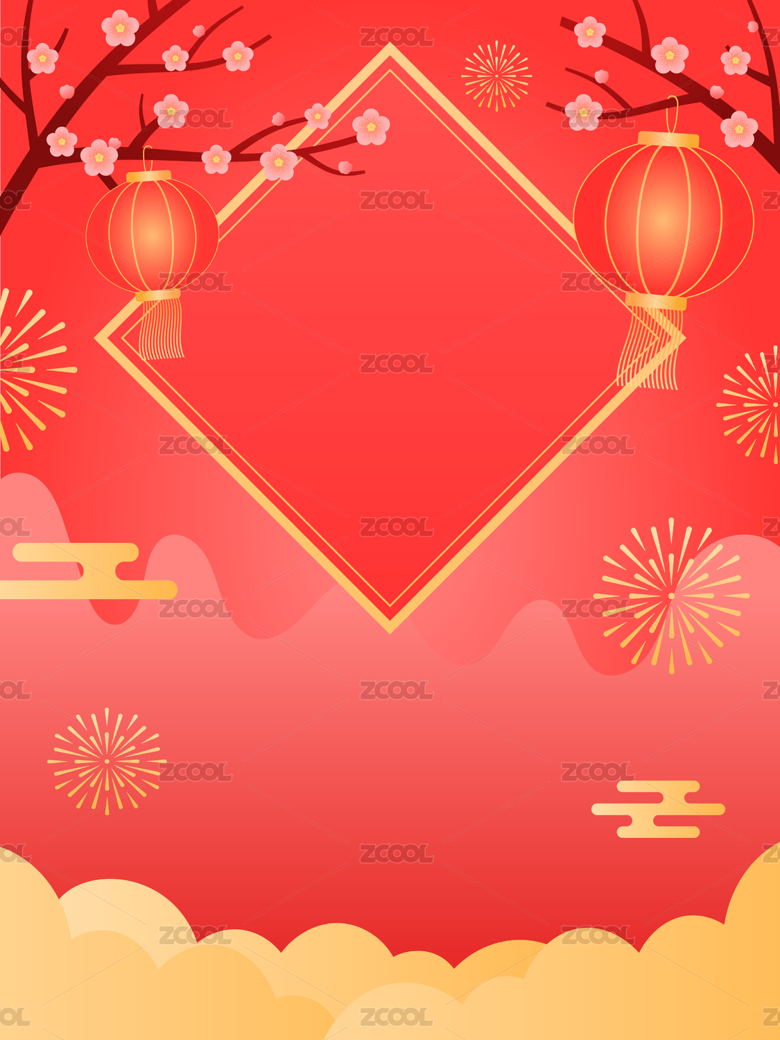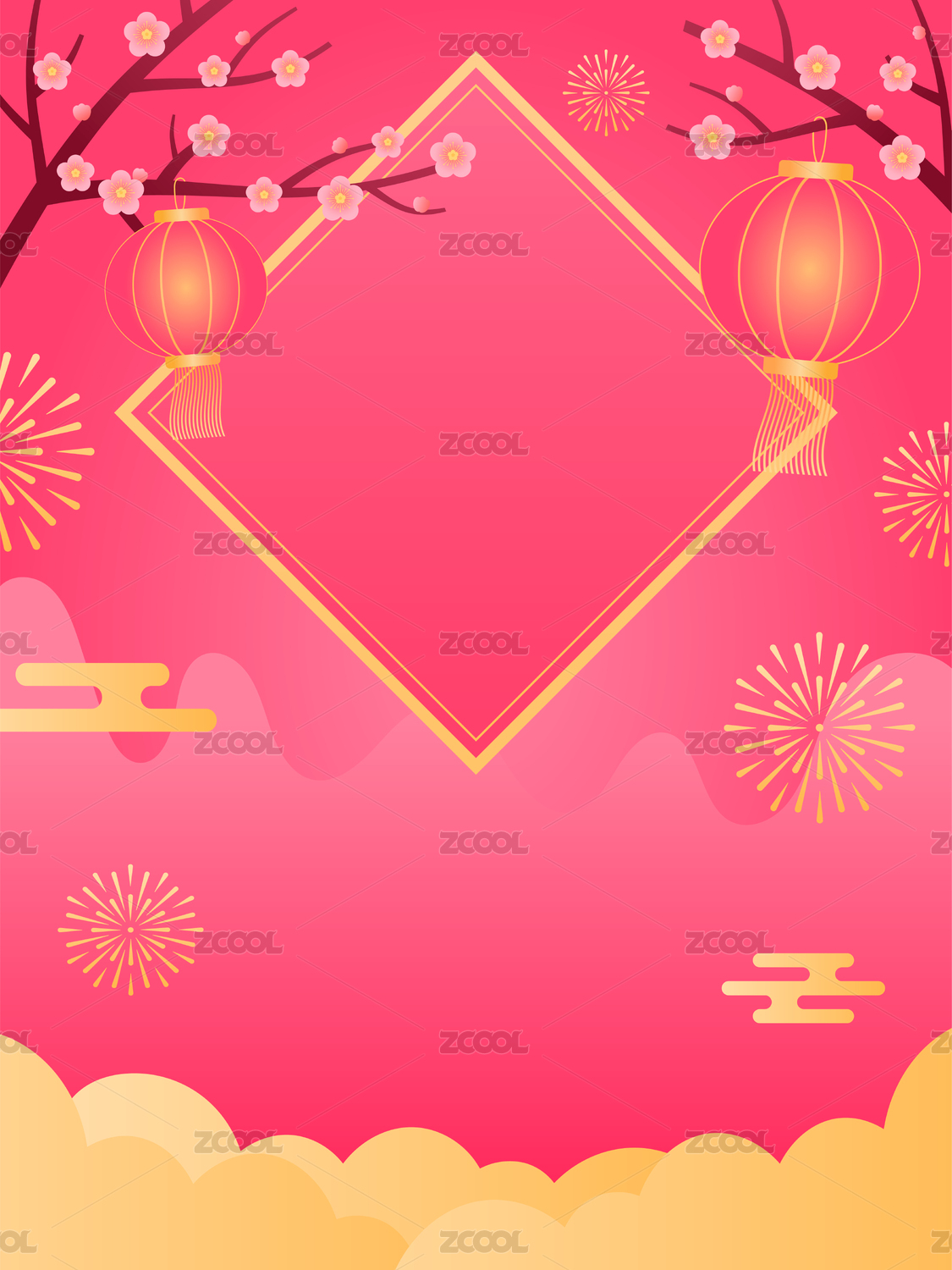 新年春节过年背景矢量插画洋红黄竖无字无人