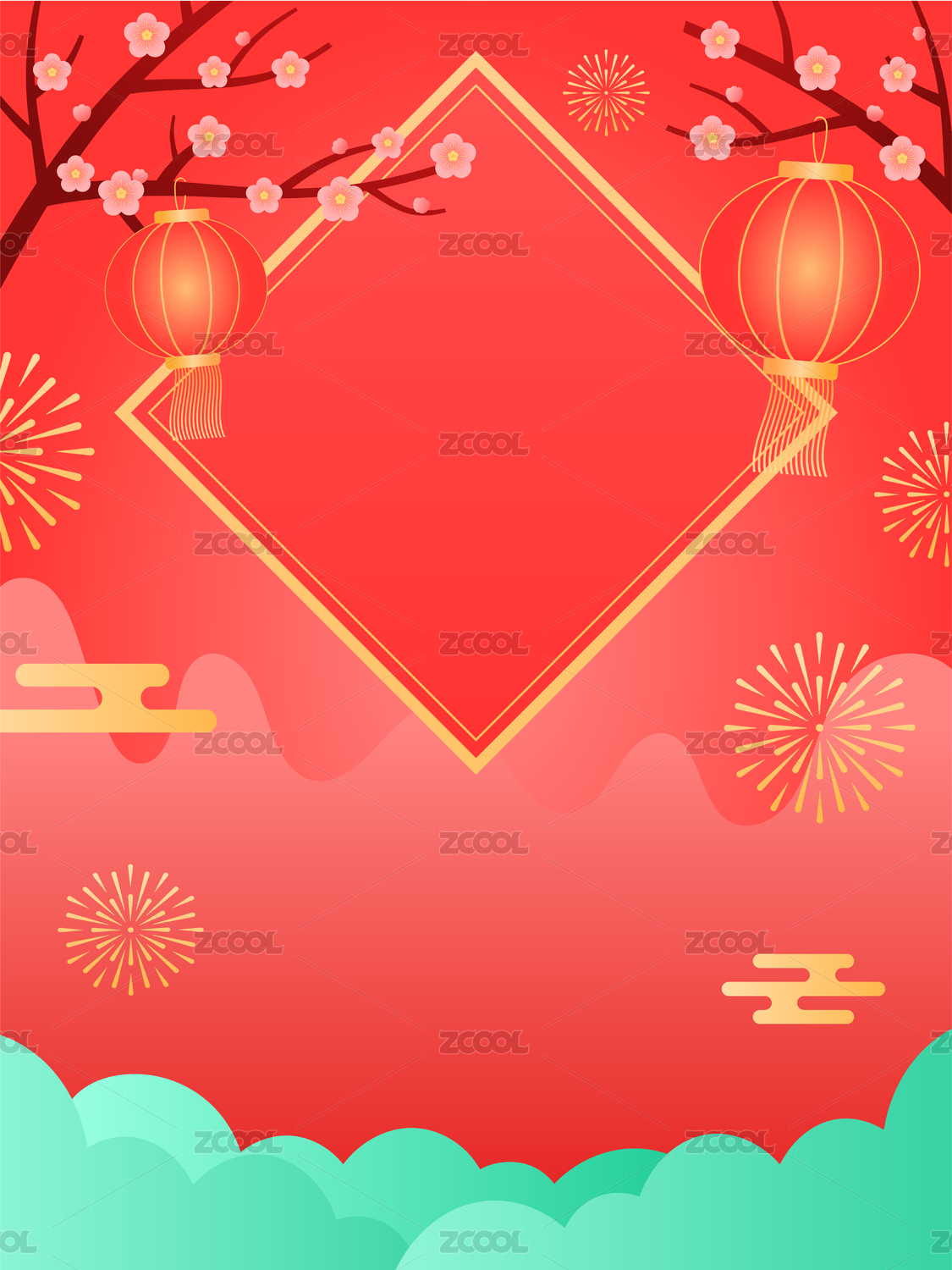 新年春节过年背景矢量插画洋红绿竖无字无人