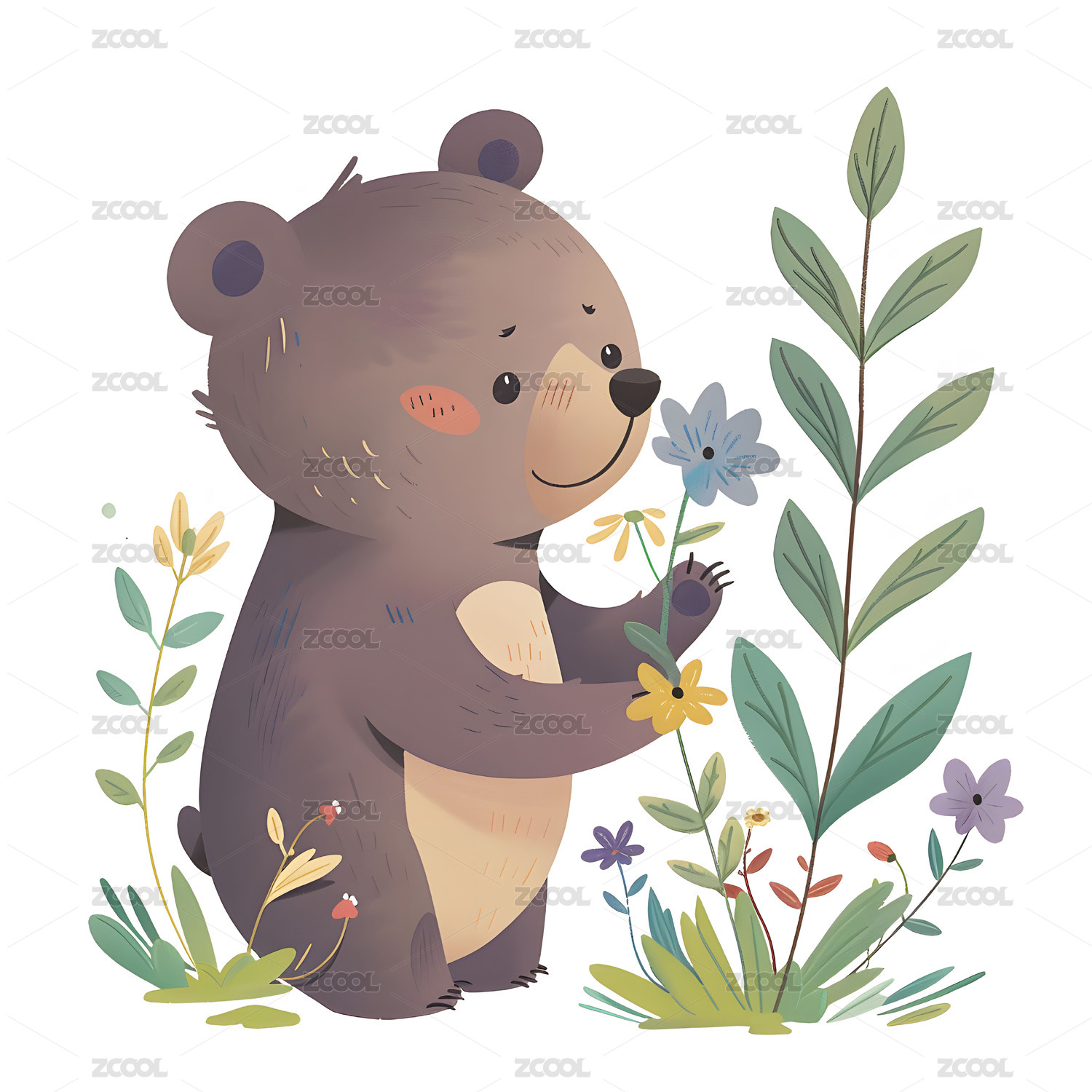 小熊与花丛