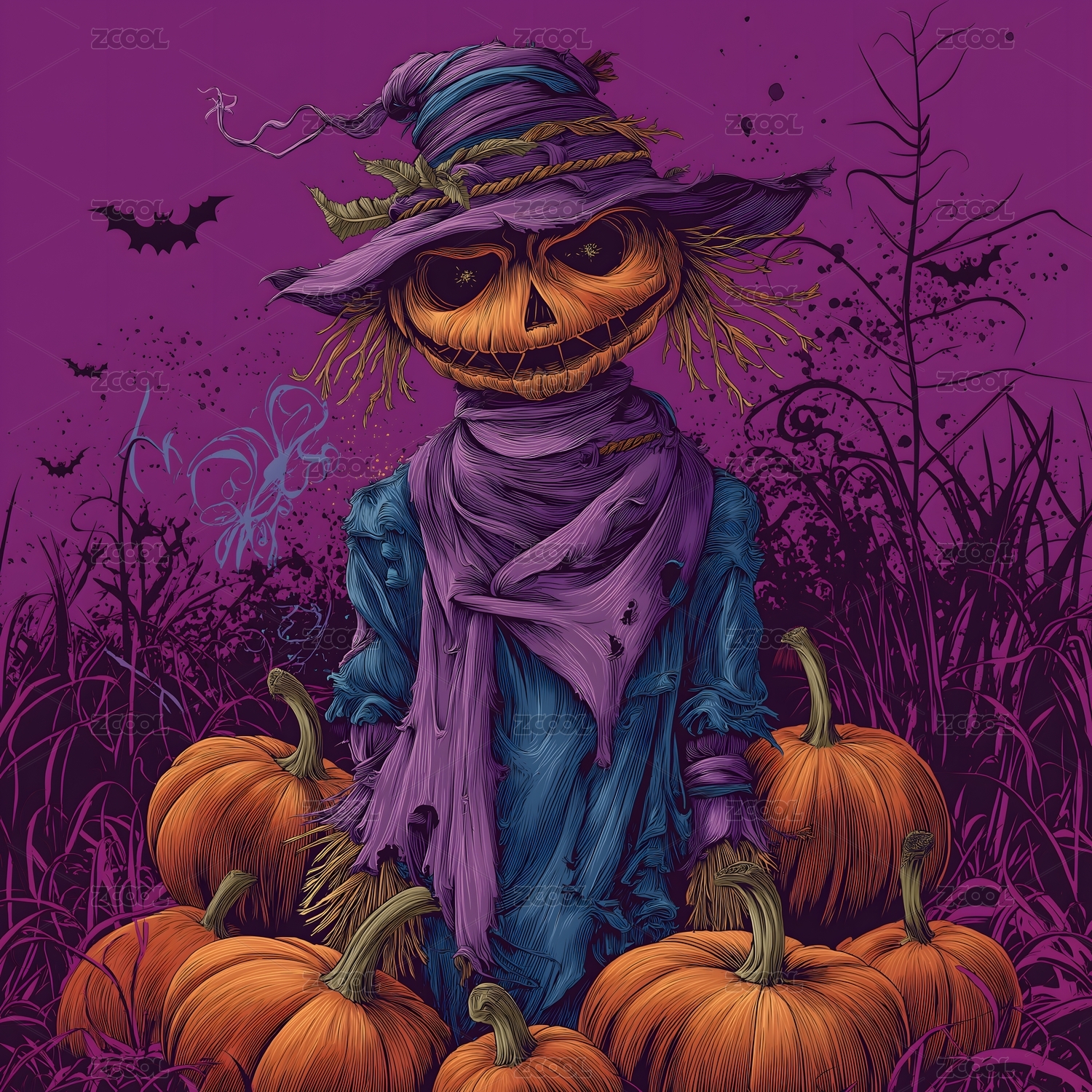 万圣节,南瓜头,黑白风,线条主义,铅笔画,鬼怪,素描