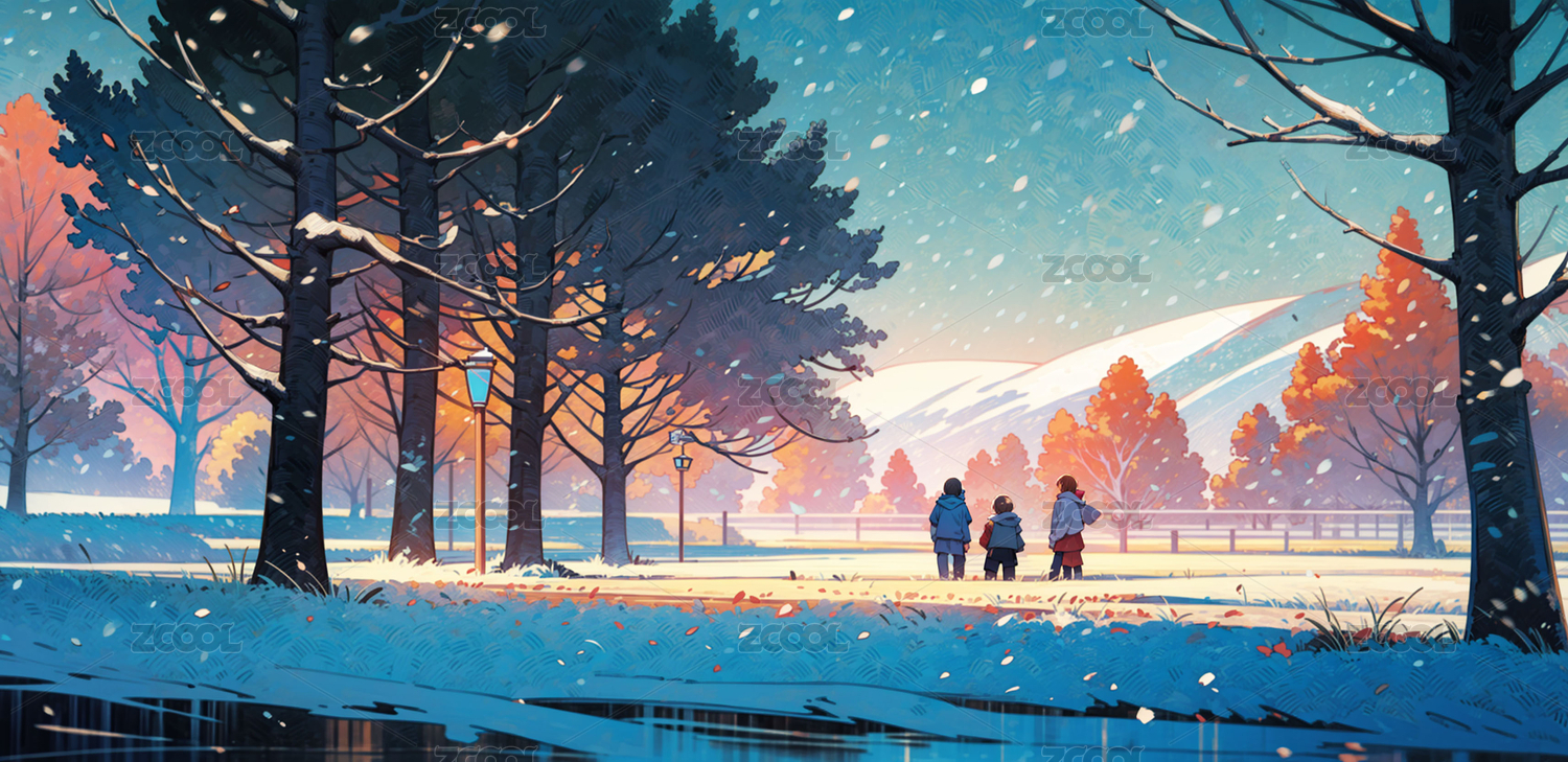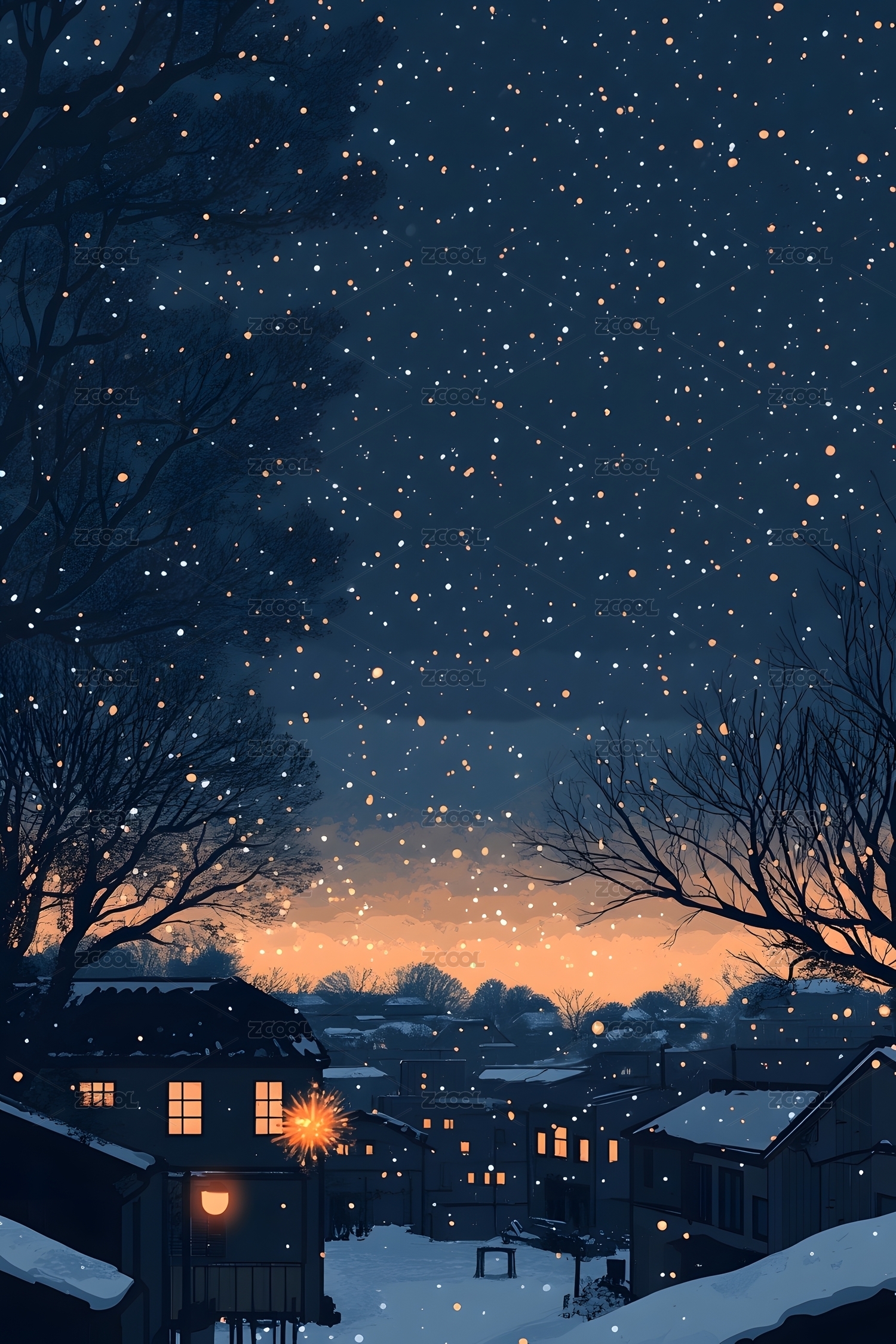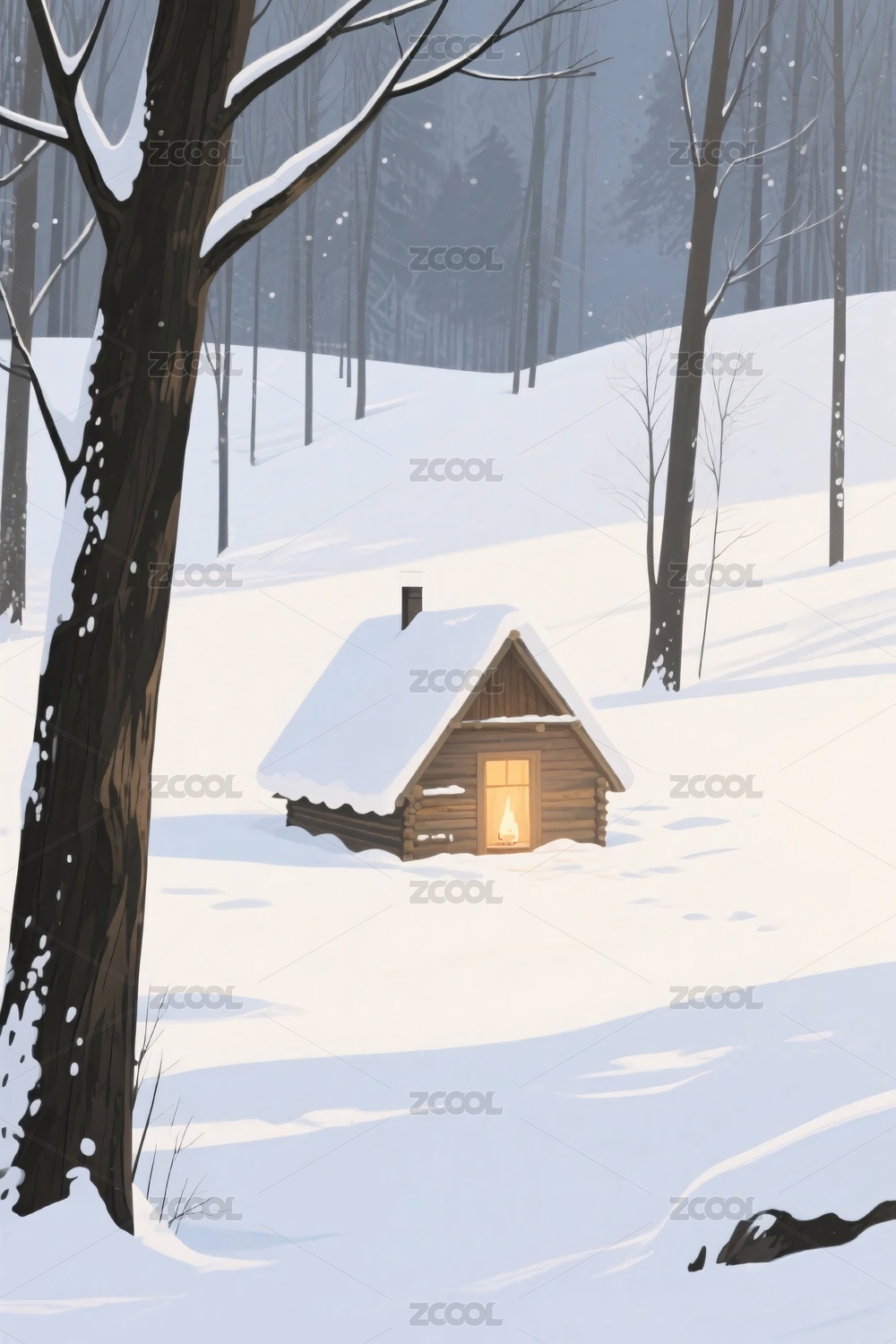 冬天,冬季,冬日,温暖,氛围,插画,壁纸,雪景,雪,雪花