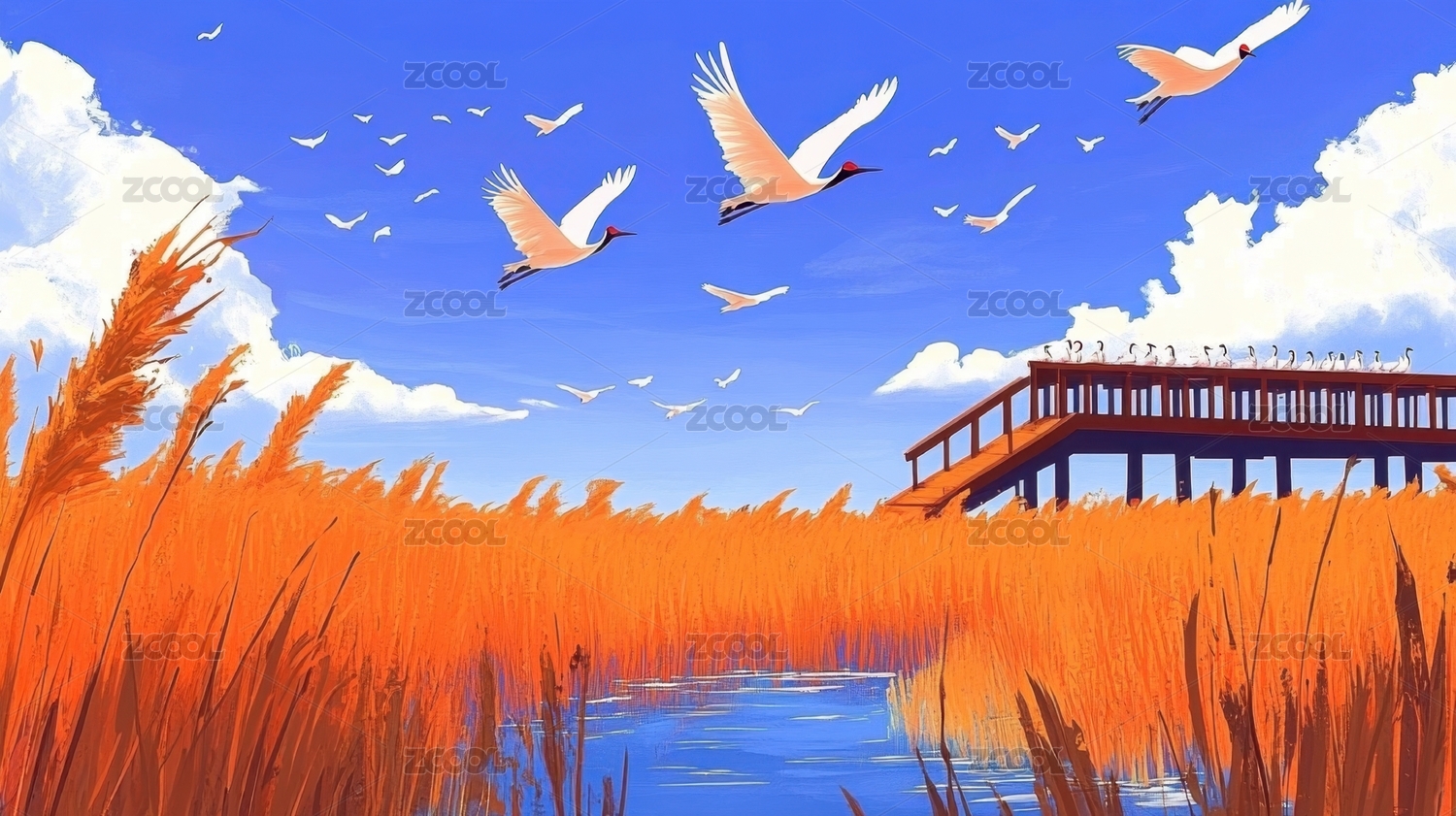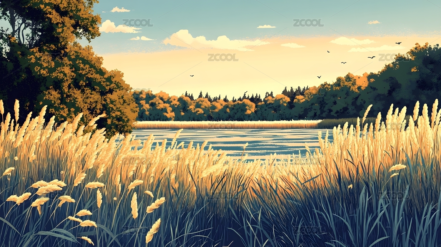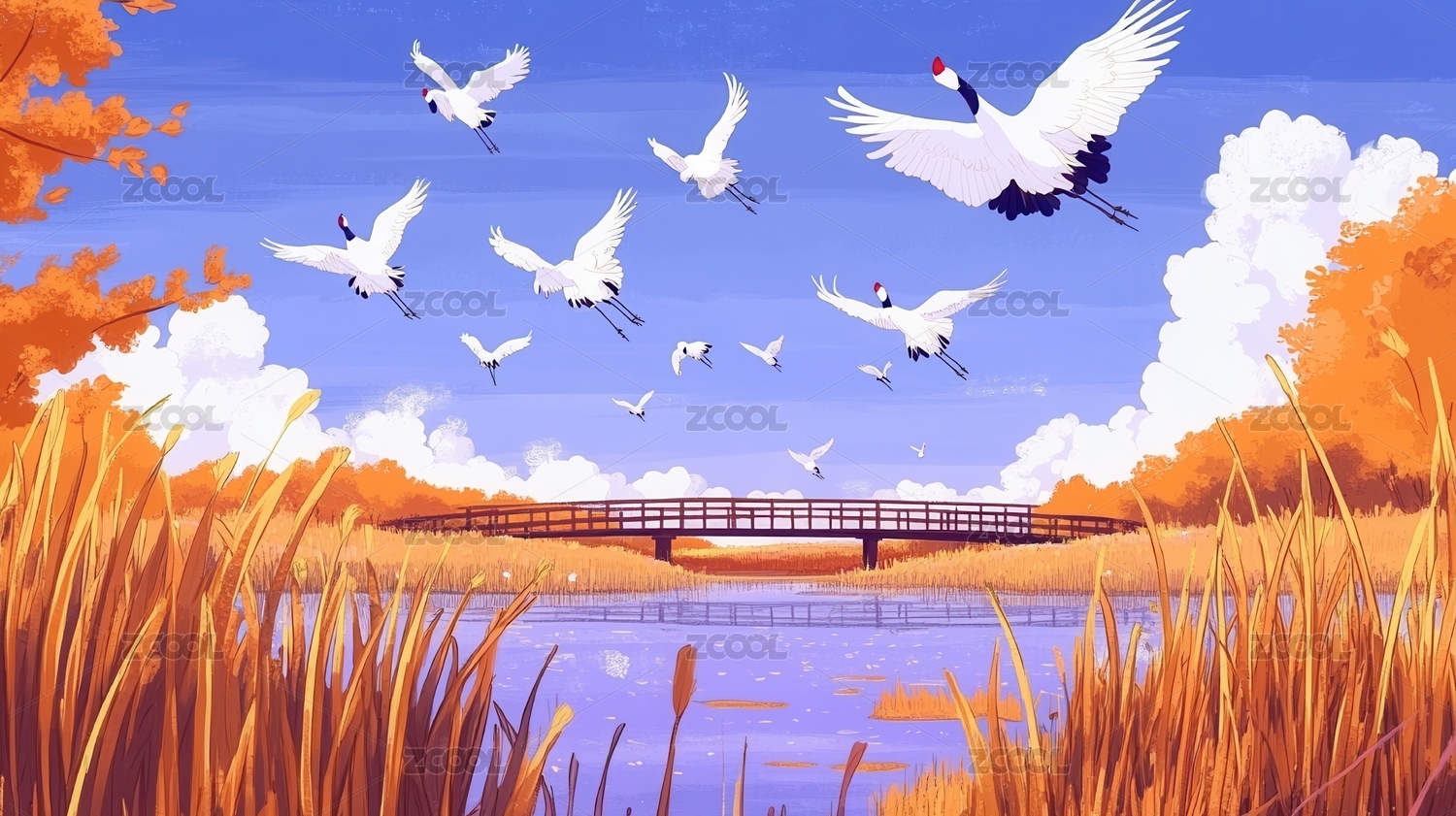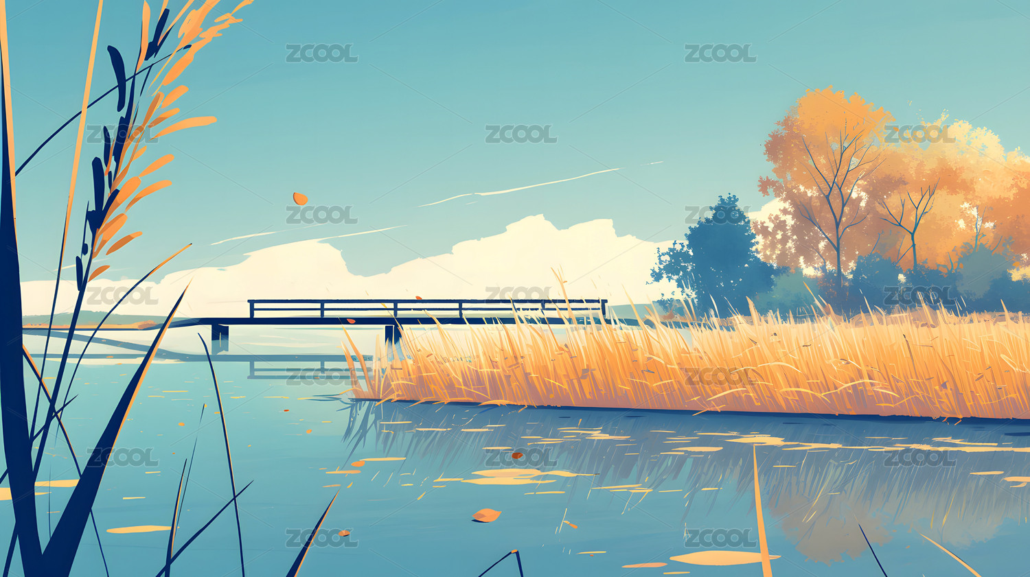 秋天秋季立秋秋分自然户外风景卡通漫画插画