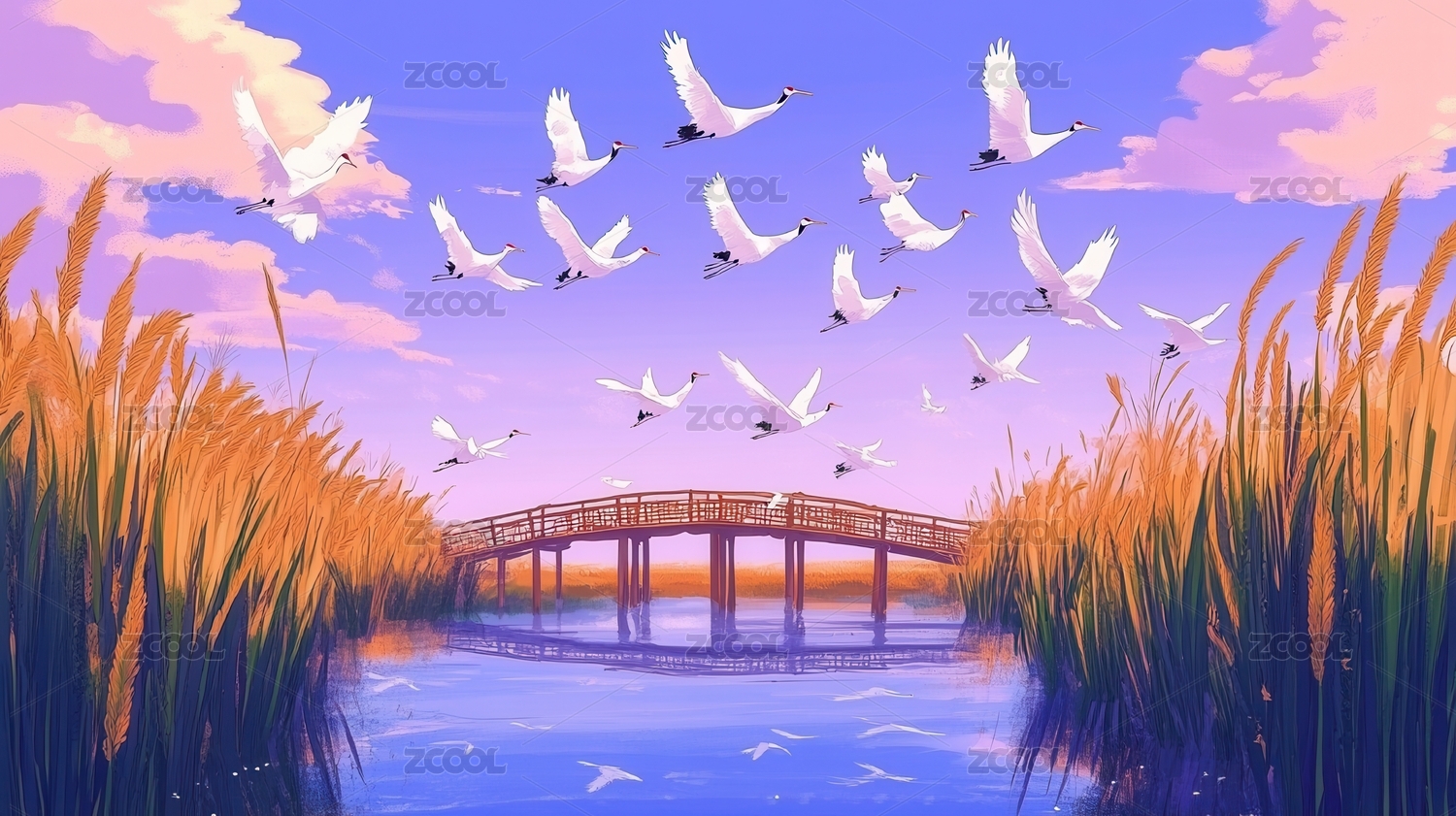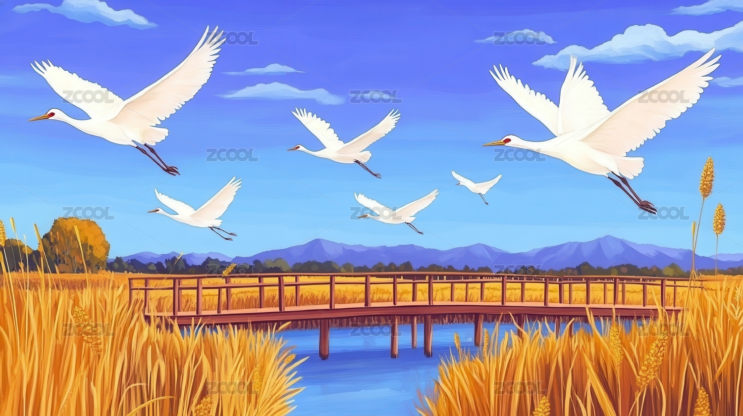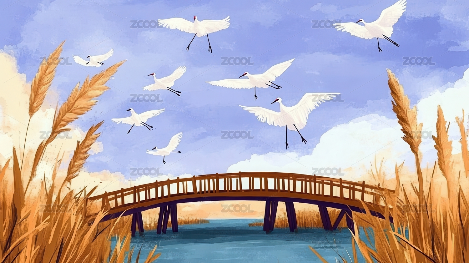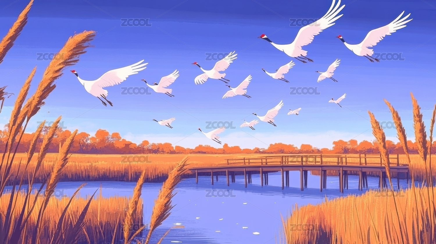 秋天秋季立秋秋分自然户外风景卡通漫画插画