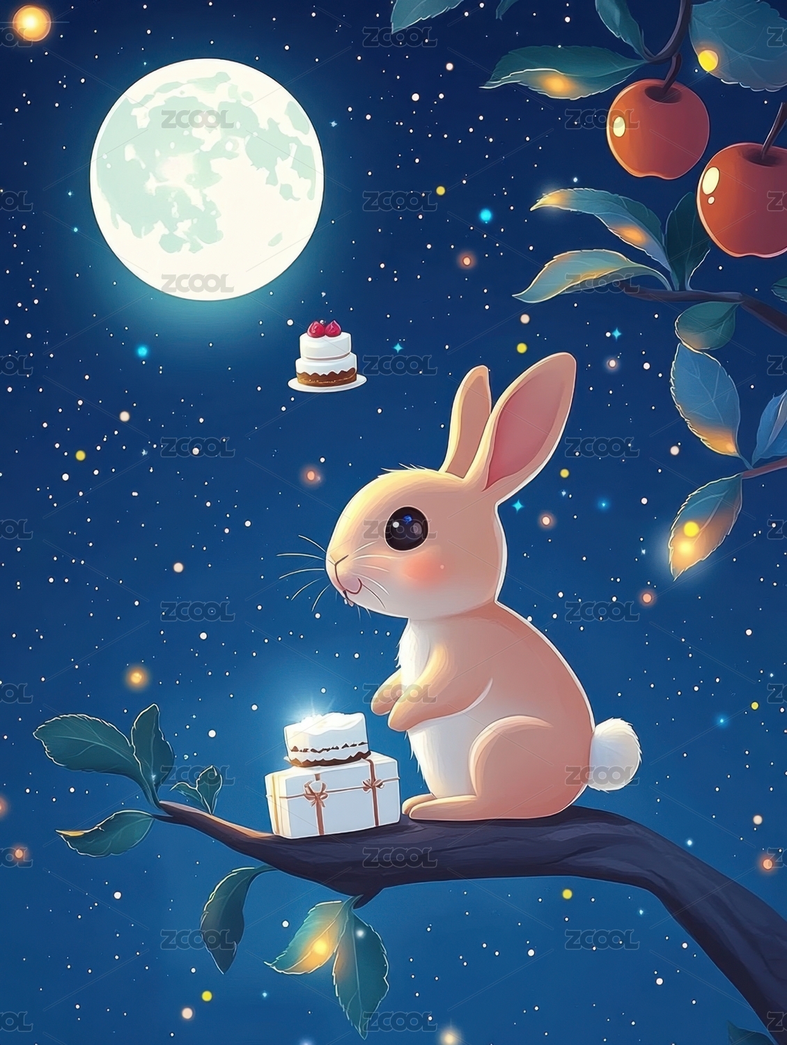 中秋月亮玉兔月饼插画