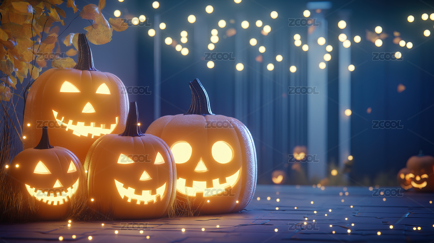 夜幕下的南瓜灯装饰的万圣节庭院背景