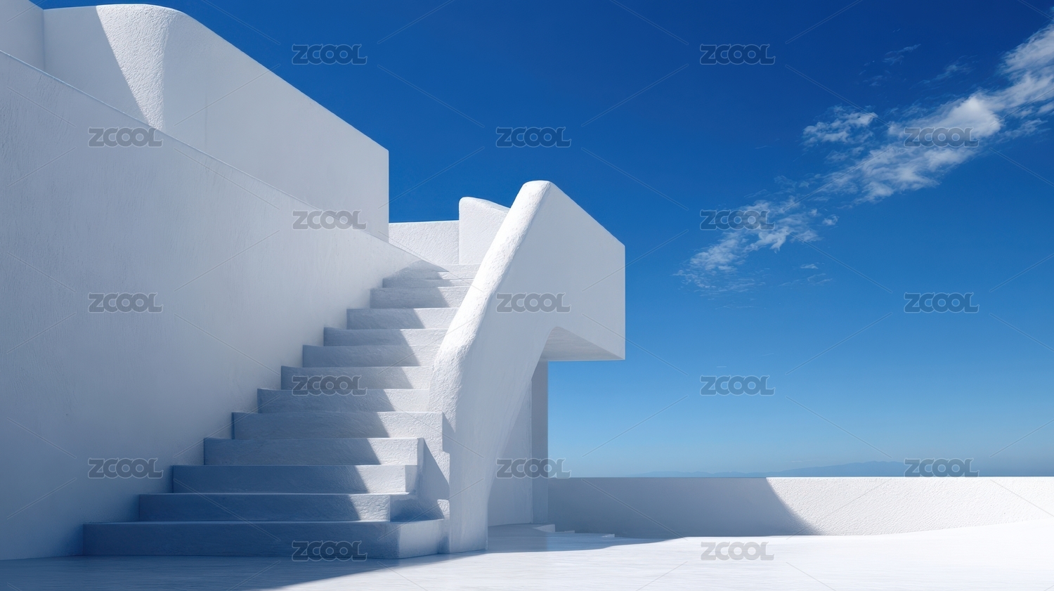 白色阶梯与蓝天的简洁建筑