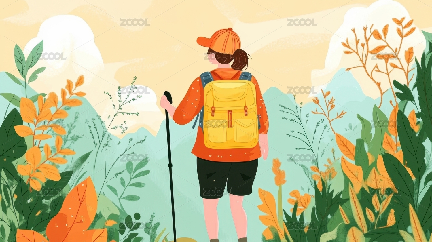 秋天秋游立秋秋分户外活动运动卡通漫画插画