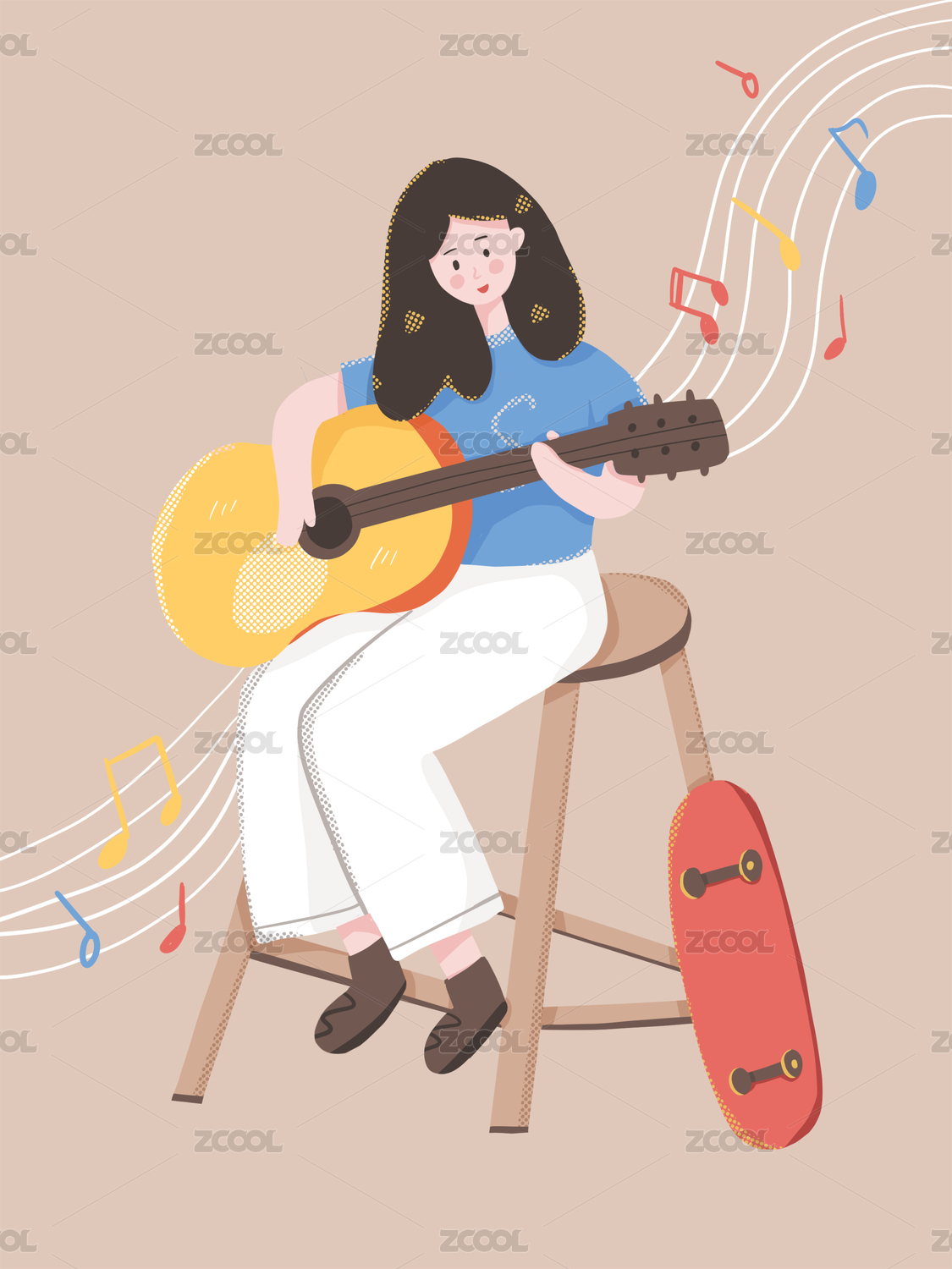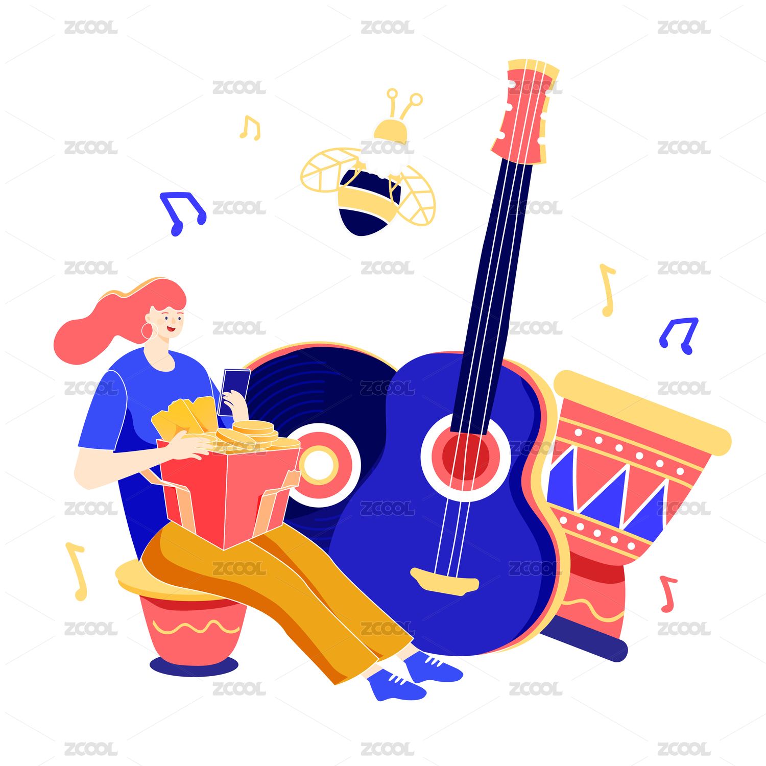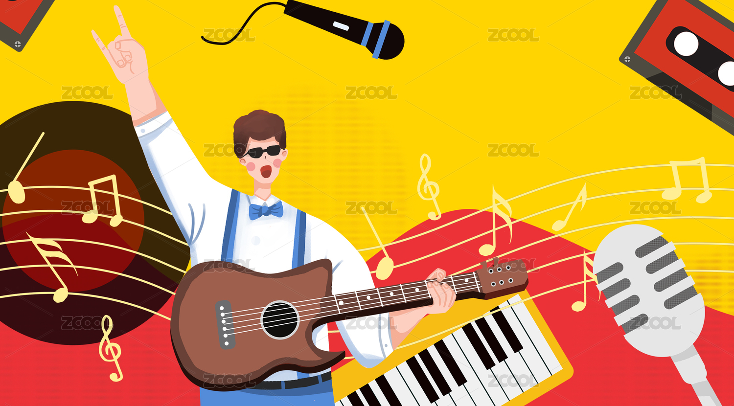 两个人开心快乐的弹奏乐器演唱音乐插画