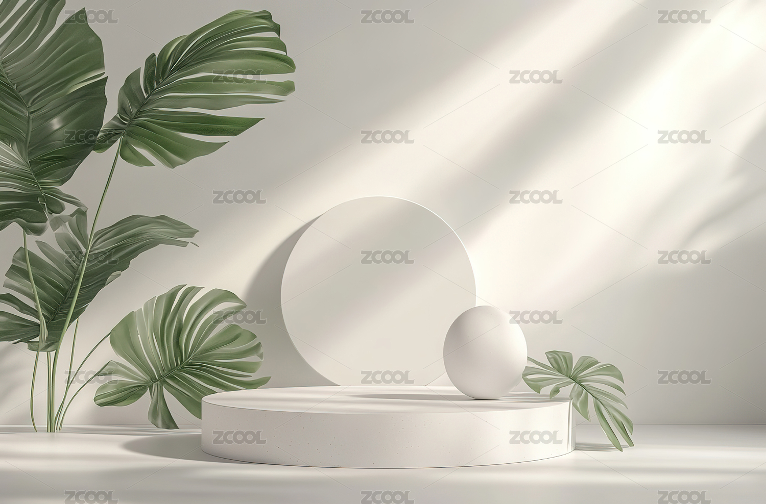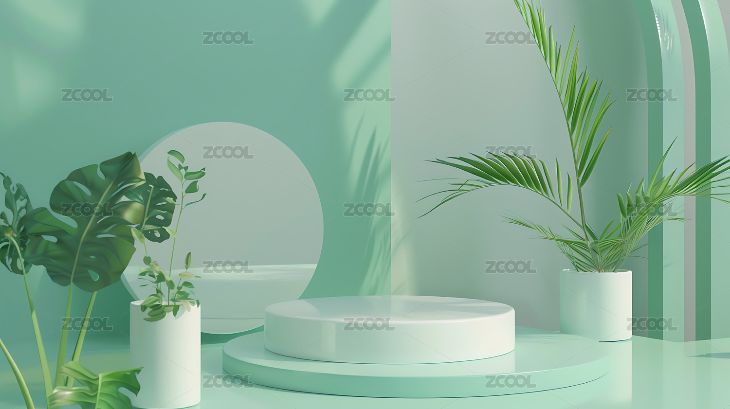 3D渲染静物产品展台绿色植物电商背景素材