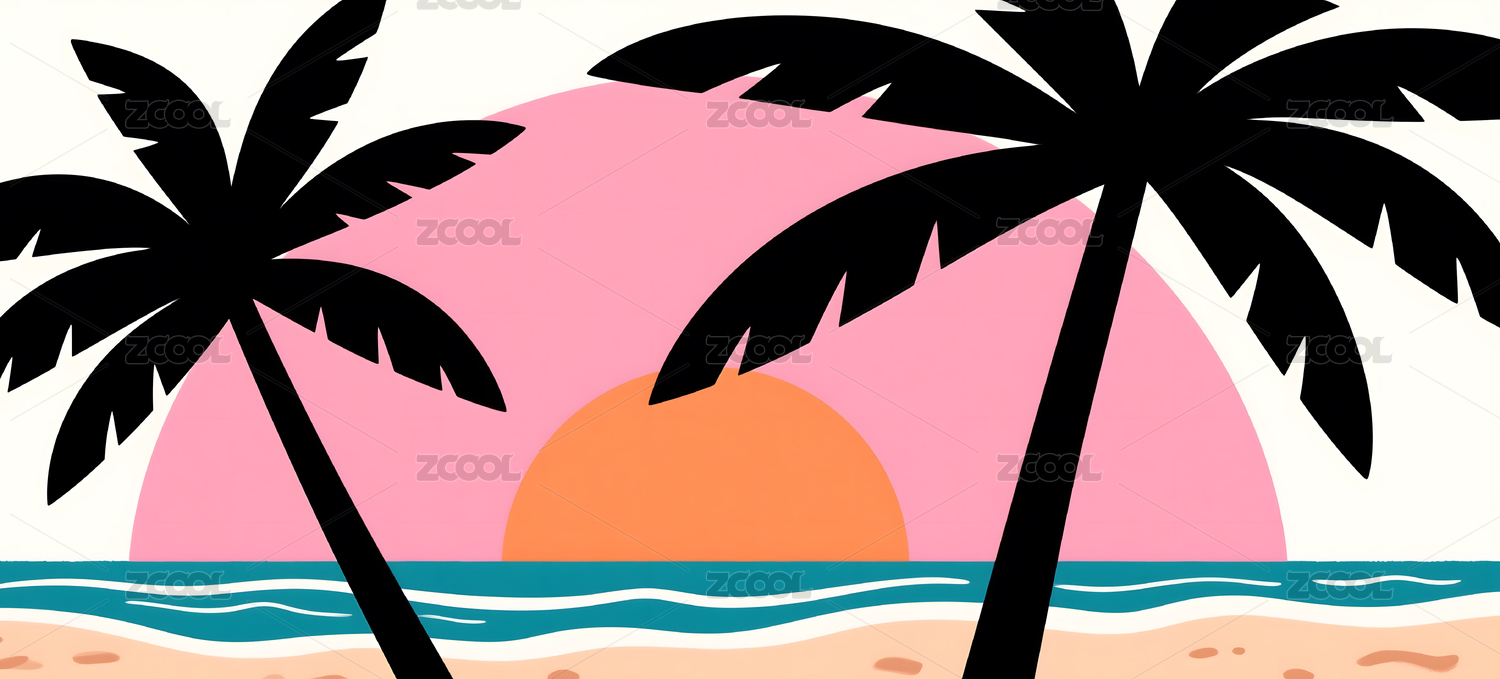 夏日海滩落日美景