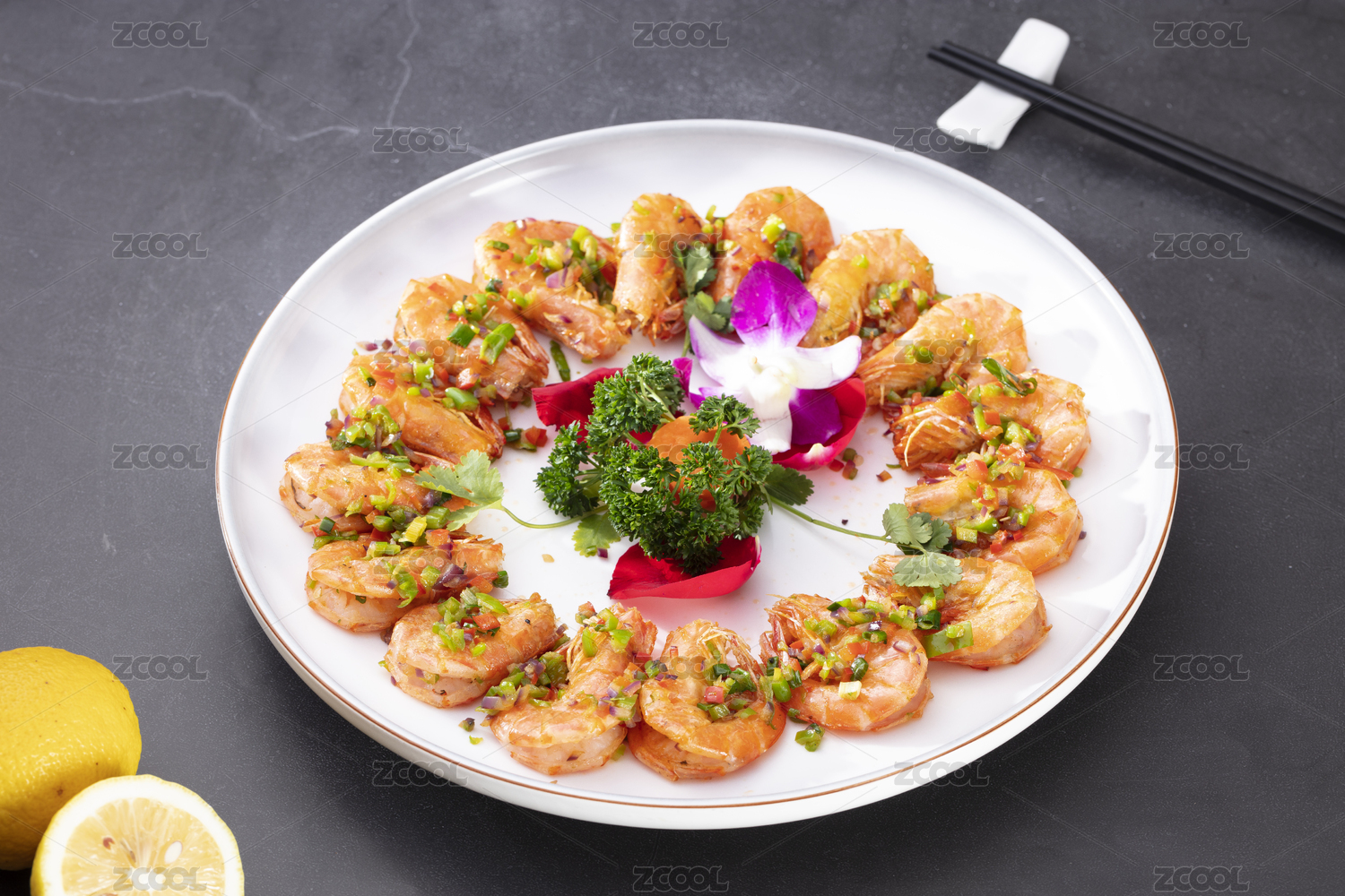 黑色盘子里的虾仁