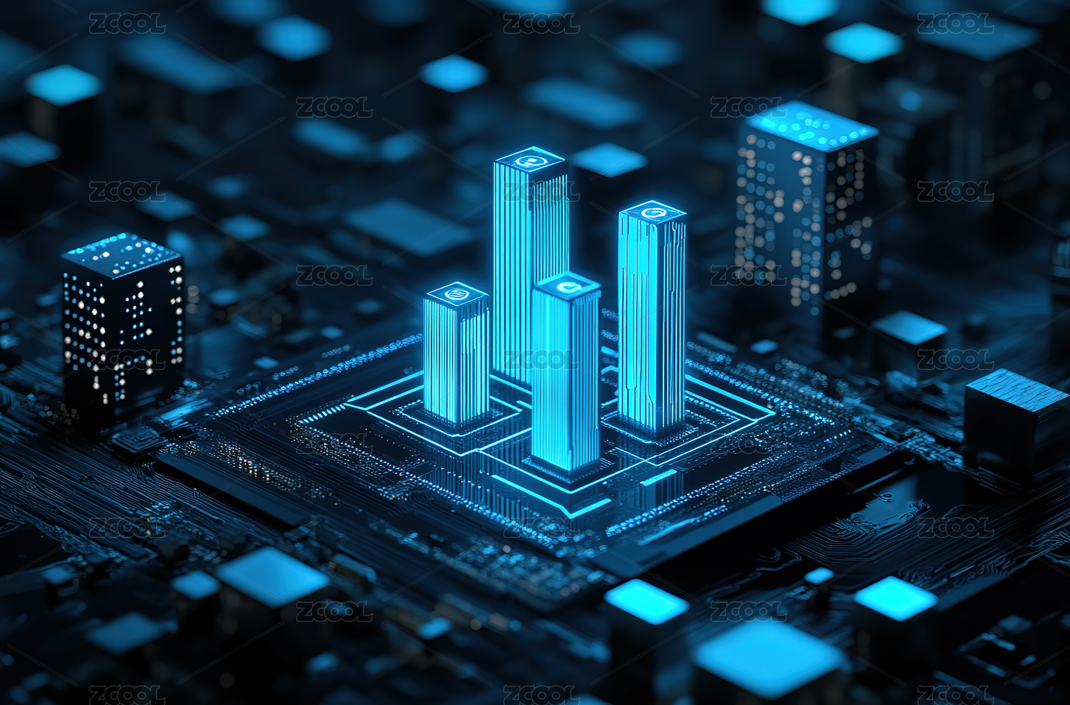 芯片,金融科技,赛博城市,人工智能,三维渲染,数字背景,基准,设备,产业,神经