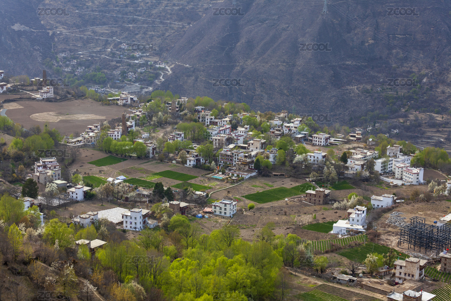 中国四川甘孜丹巴中路藏寨春天