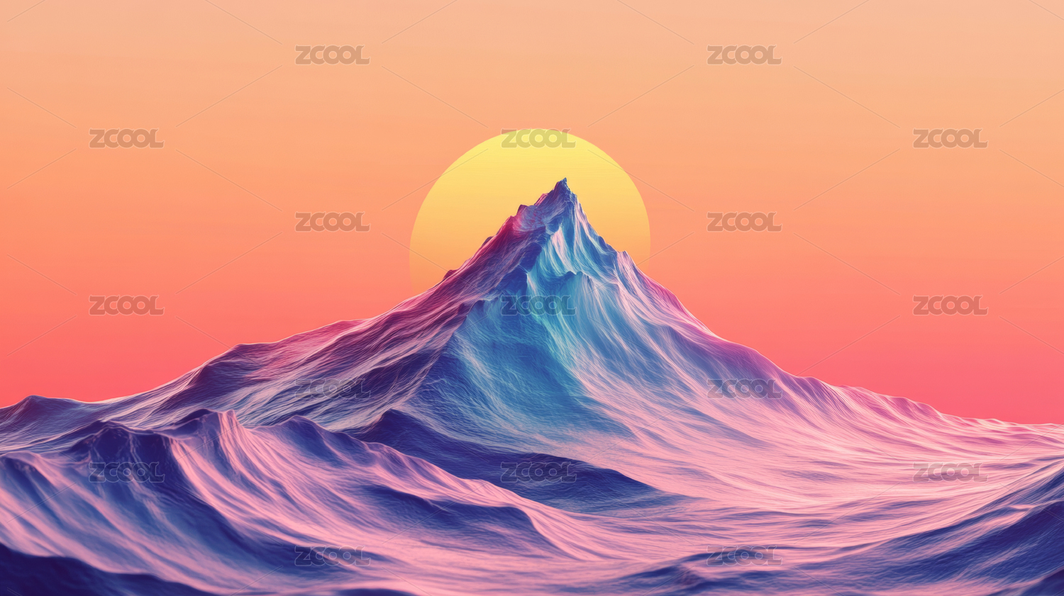 虚拟艺术化的山峦和天空插图