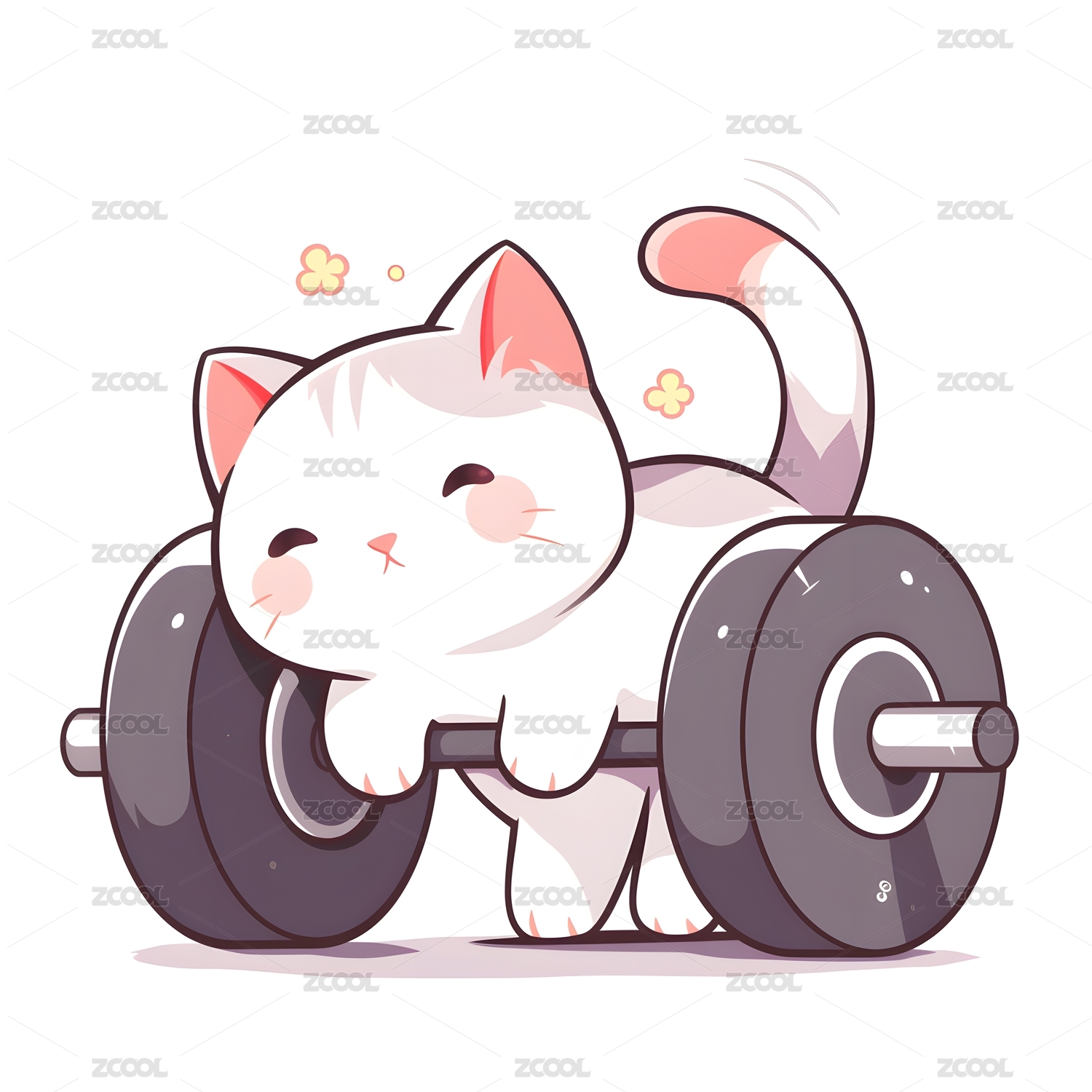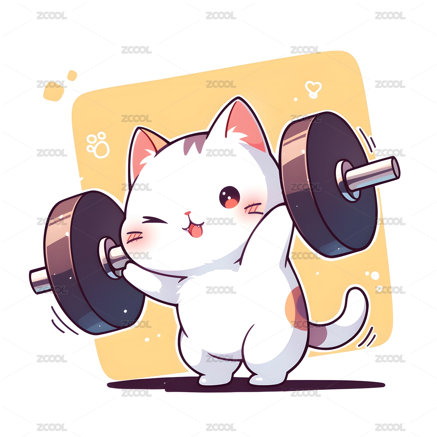 一只努力抓起杠铃举重的卡通小猫印花图案