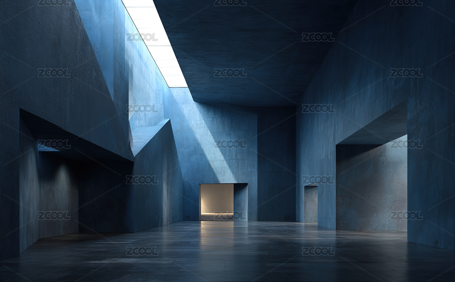 现代,艺术,展览,空间,蓝色,混凝土,灯光,室内,设计