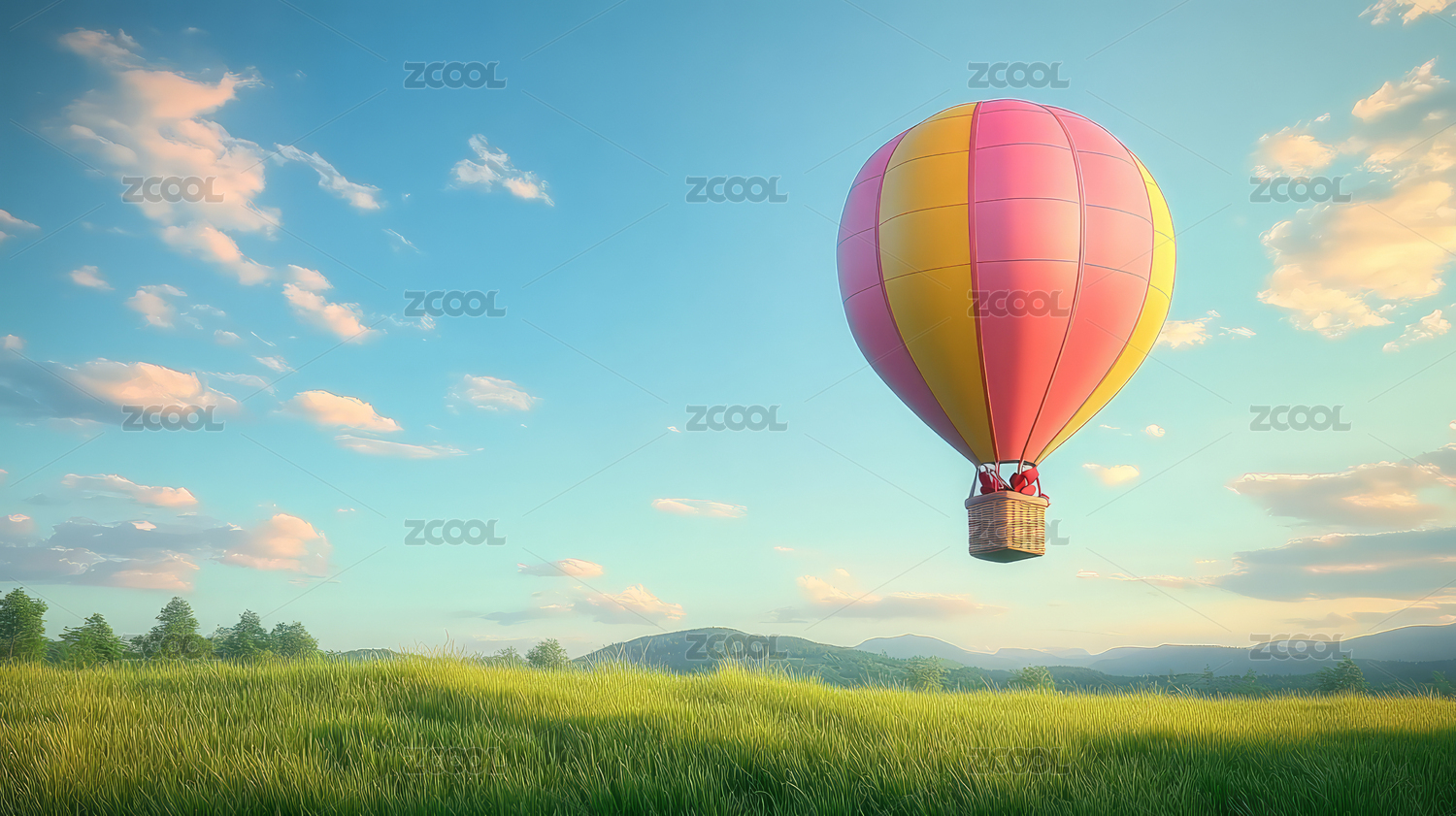 3D草地热气球蓝天白云
