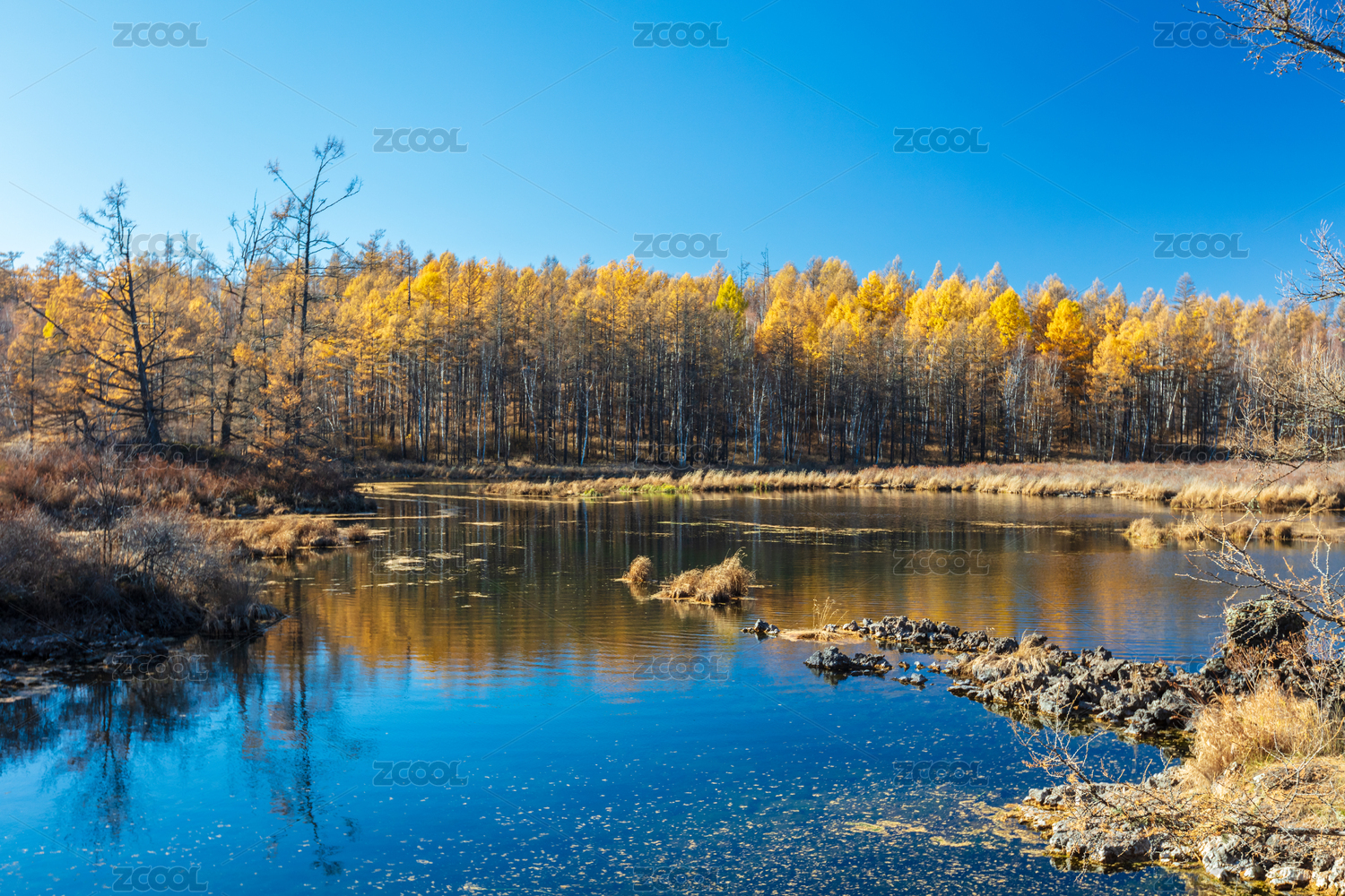 中国内蒙古阿尔山国家森林公园不冻河秋景