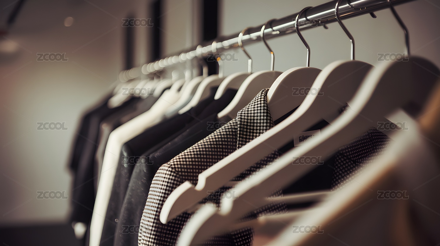 挂在衣柜里的衣服特写