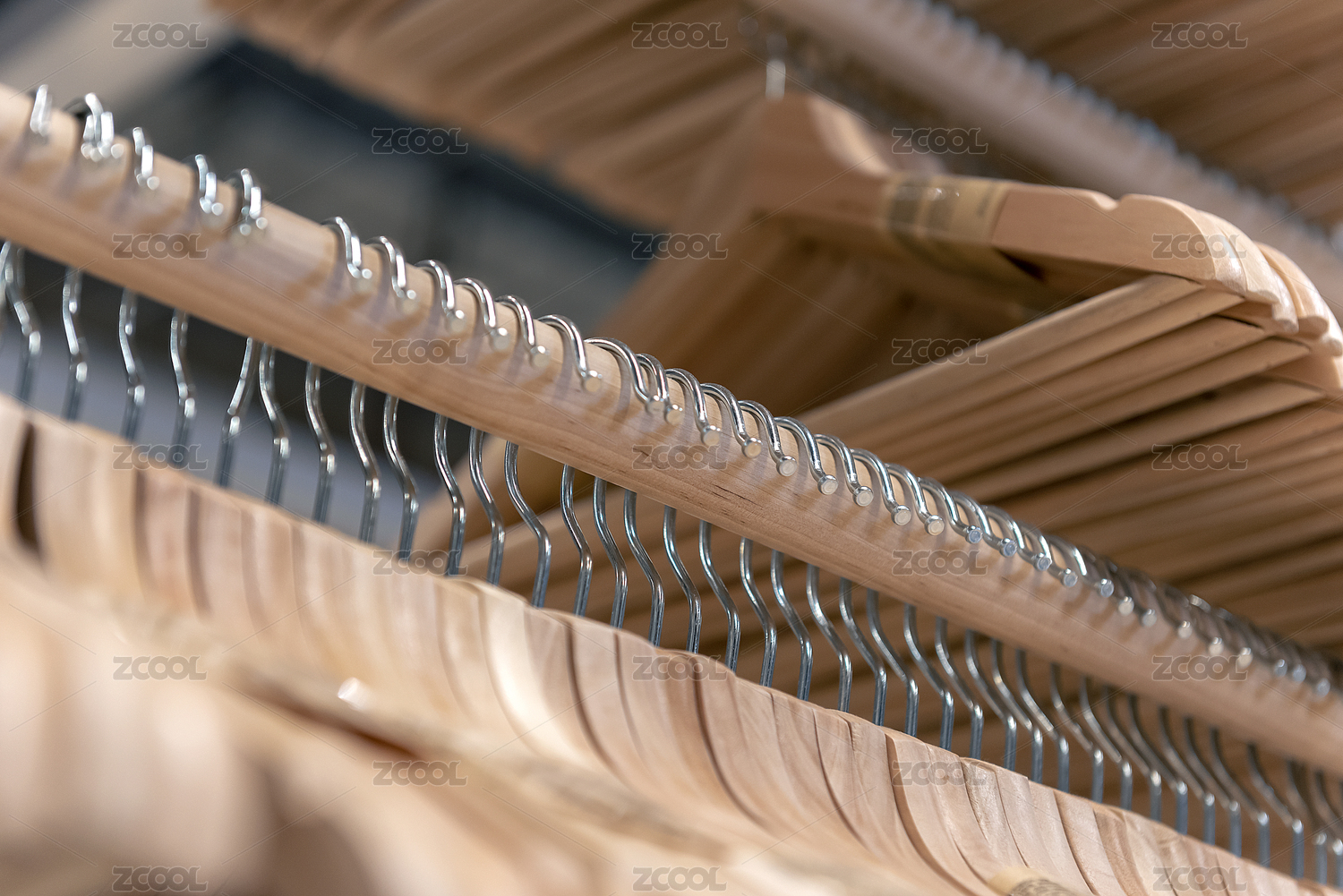 挂在横梁上的木质衣架特写