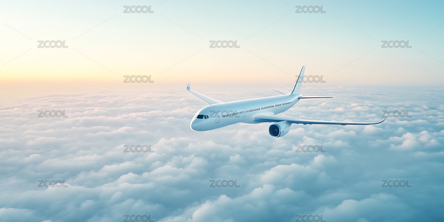 亚洲夏季商用客机飞行在美丽晴朗的天空