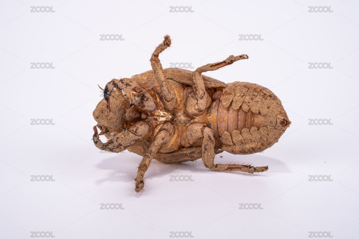 蝉若虫蜕下的皮白底