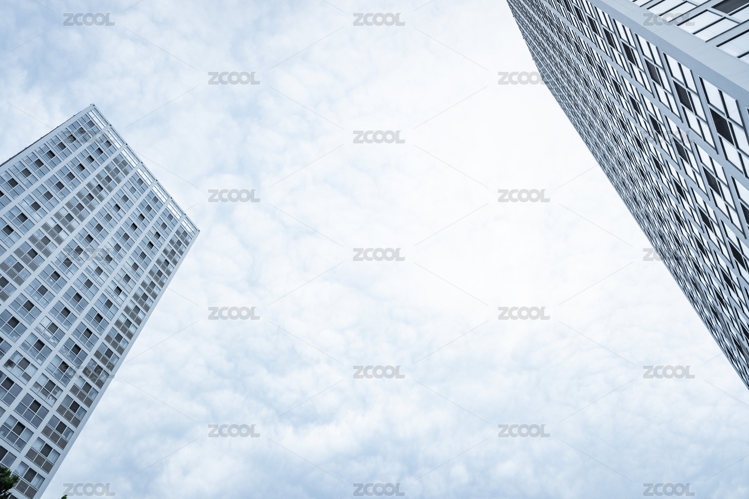商务办公楼宇建筑低角度仰视视图