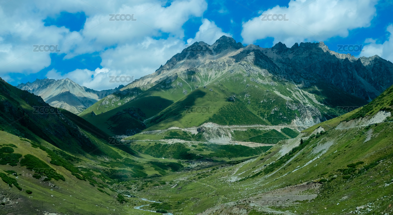 四川甘孜藏族自治州夏天草原山水雪山自然风