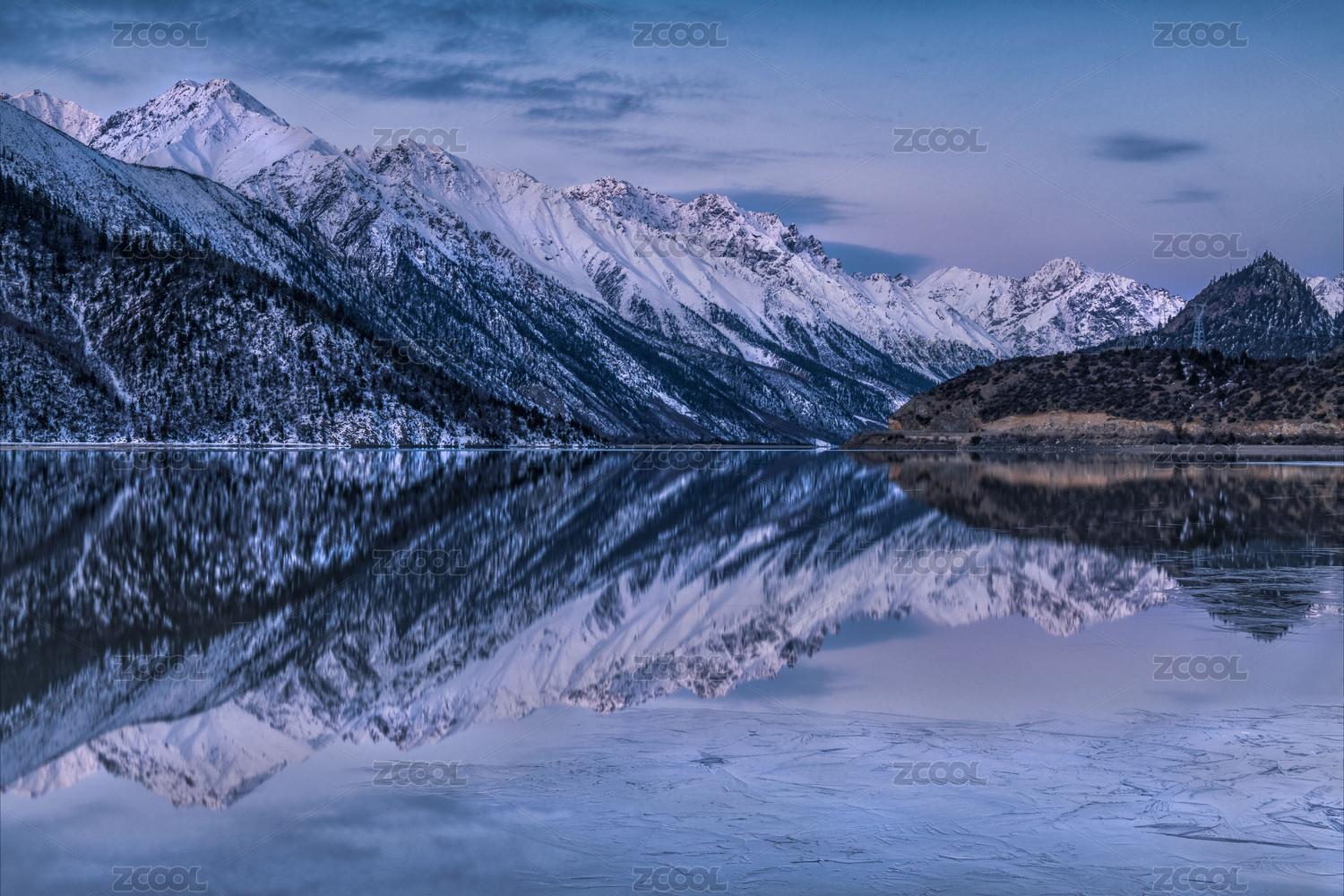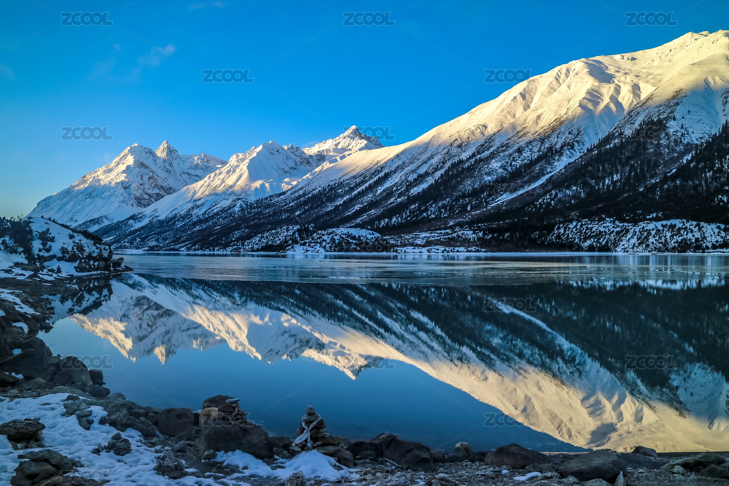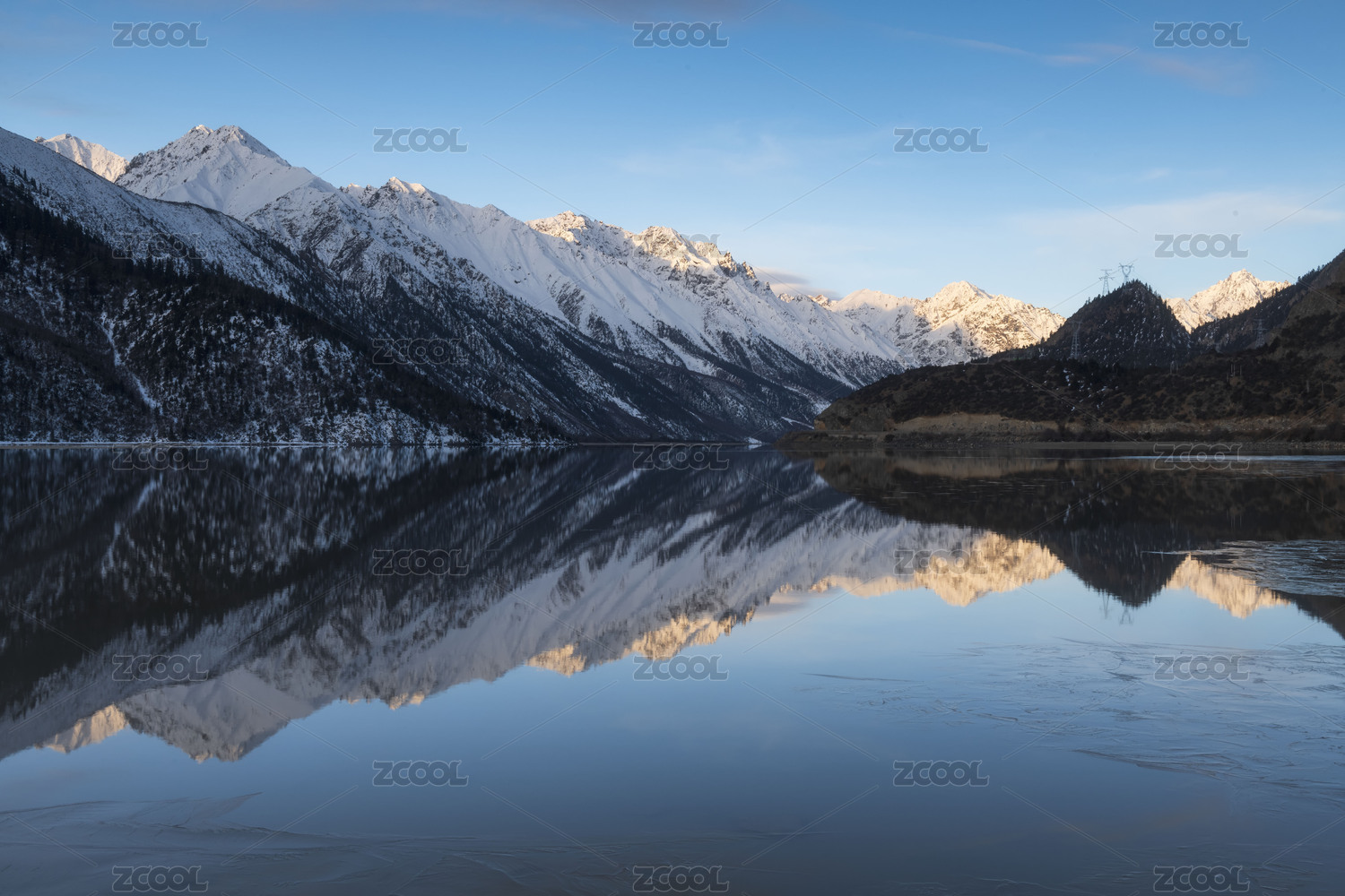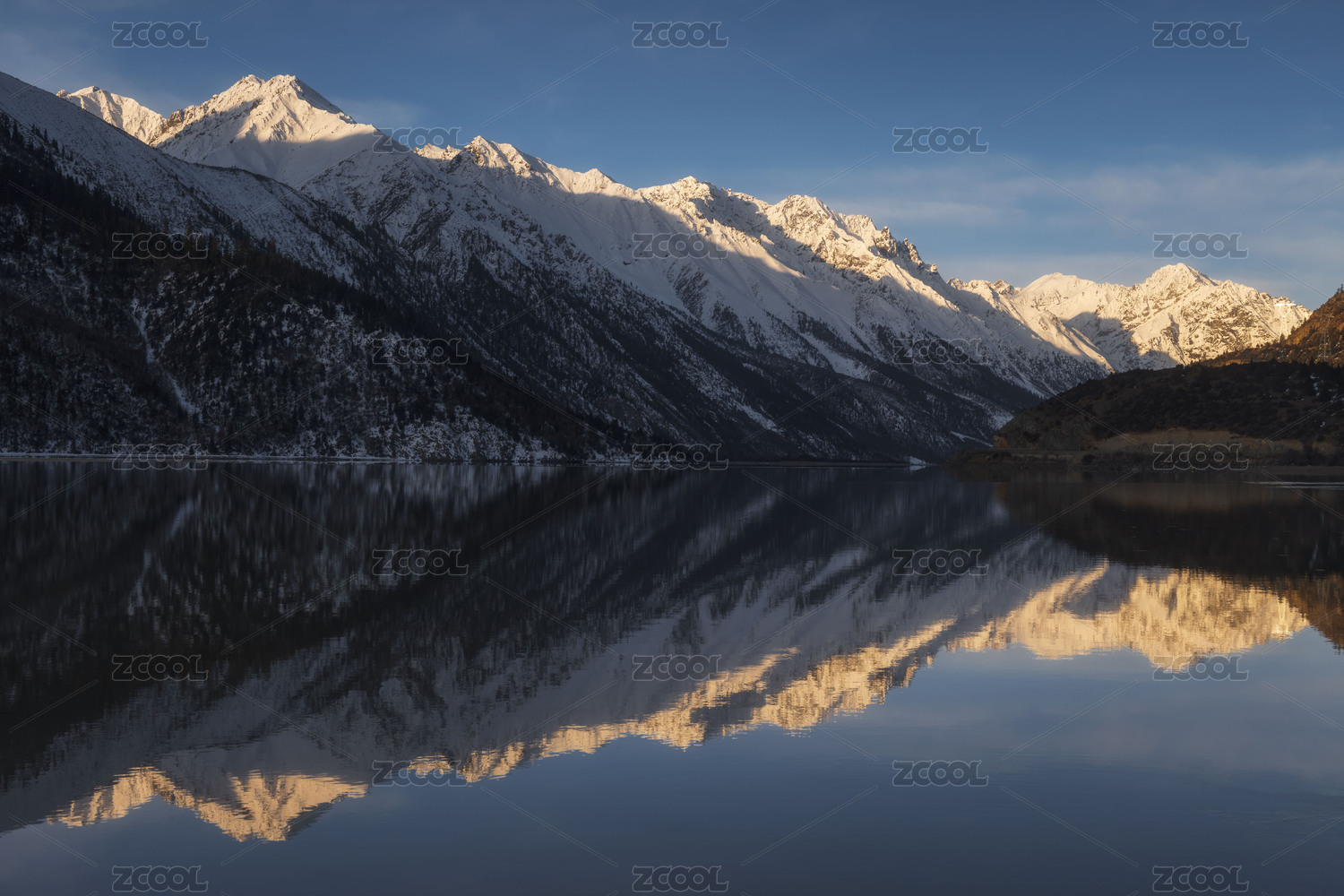 中国西藏那曲市萨普神山雪山湖面倒影