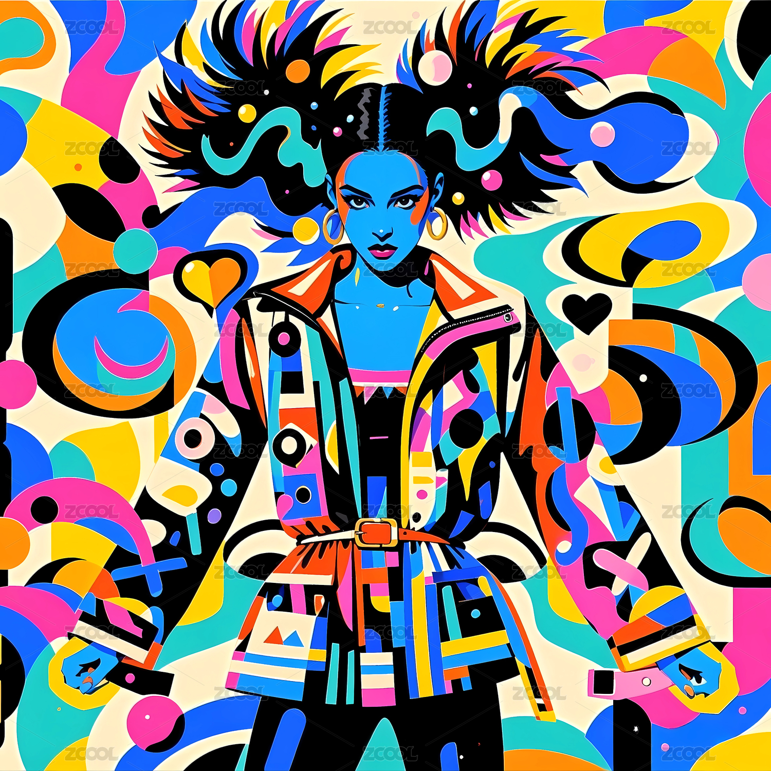插画风格的时尚美女艺术画