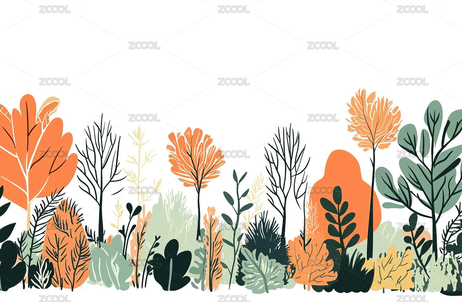 白色背景下的花朵与树木