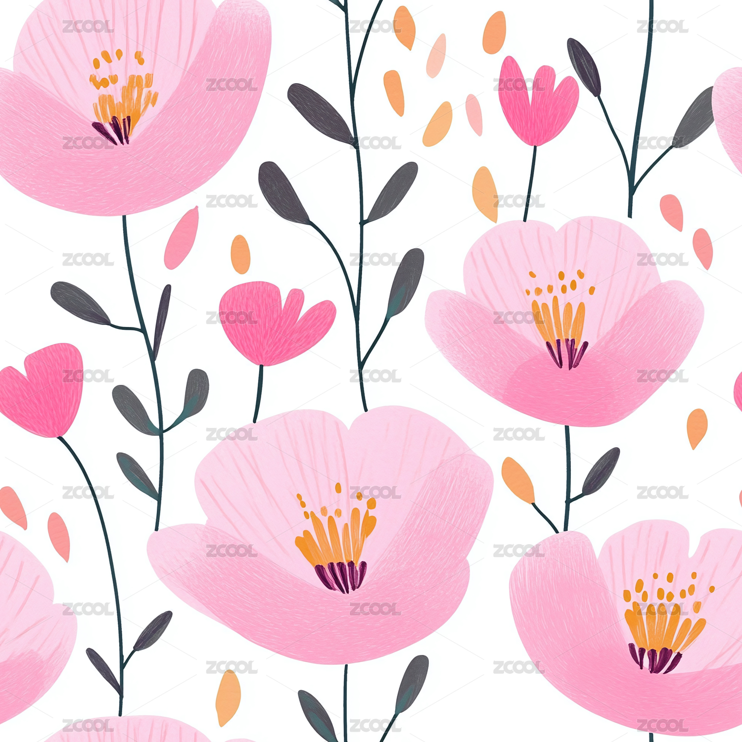粉色花卉四方连续无缝图