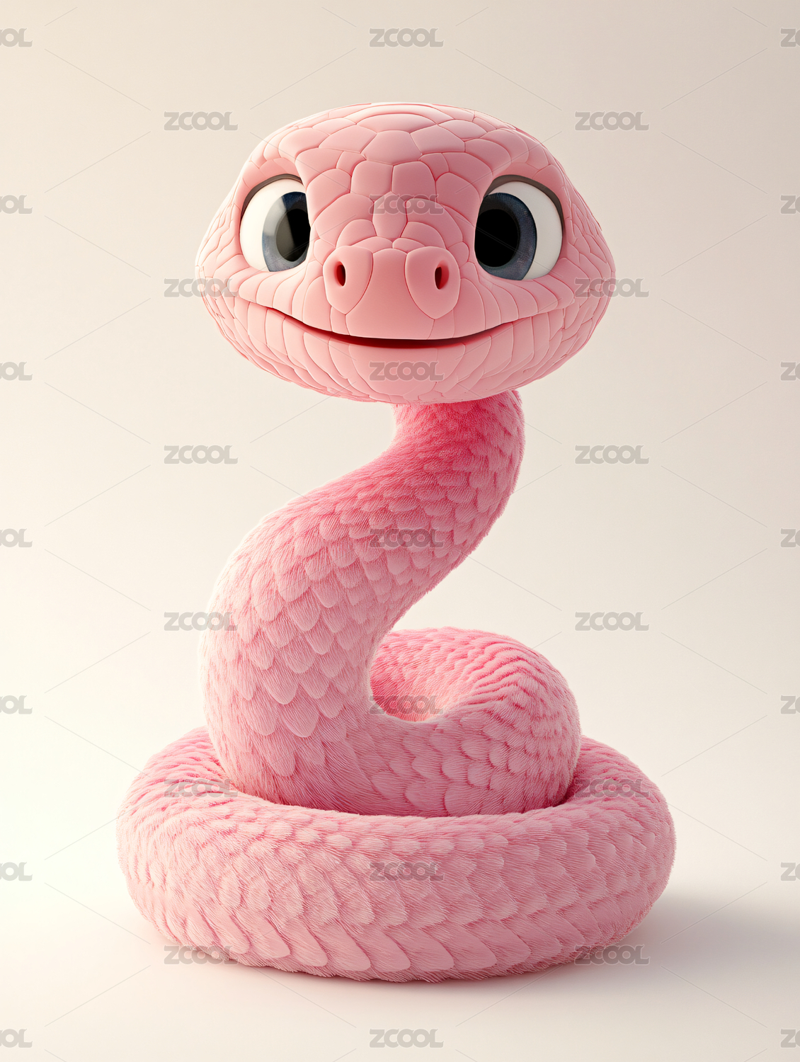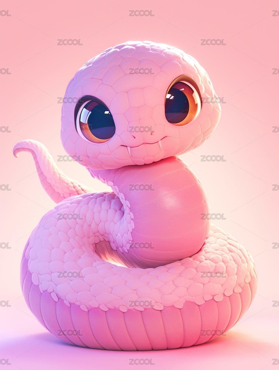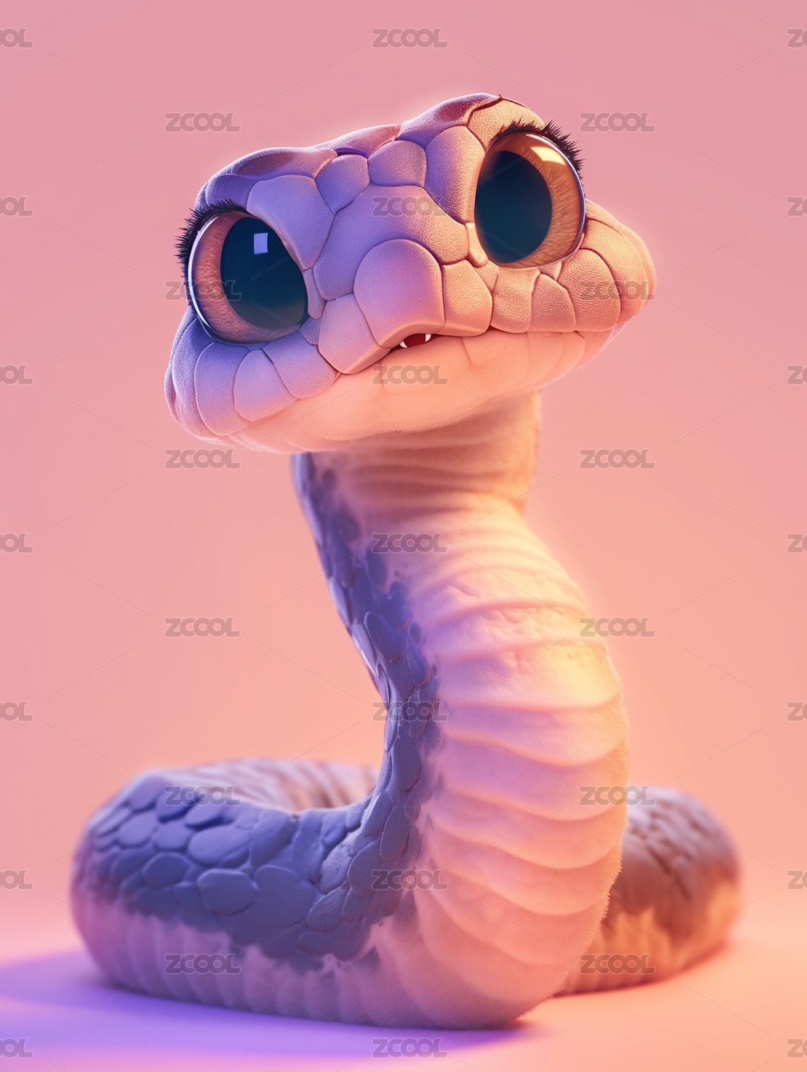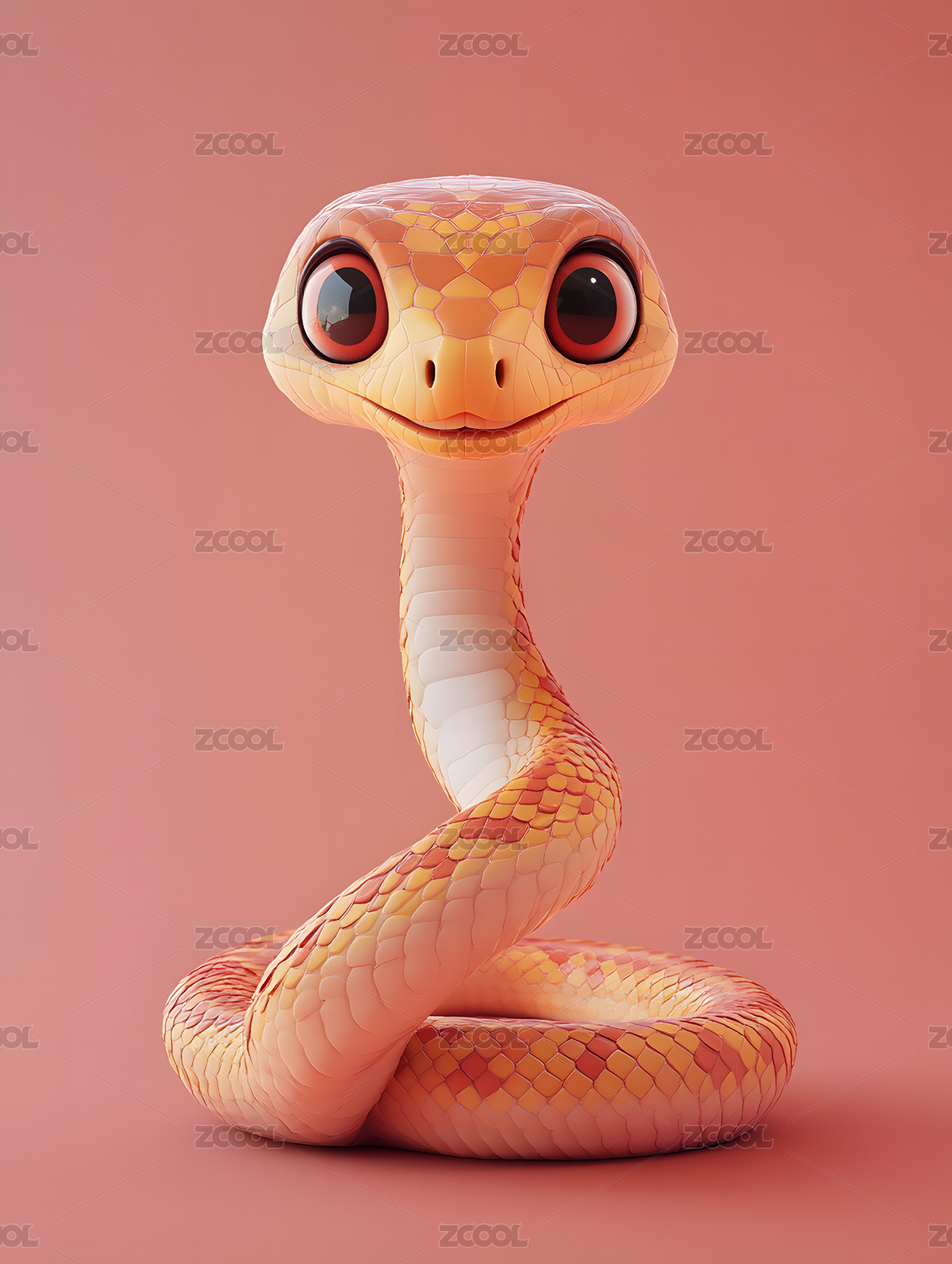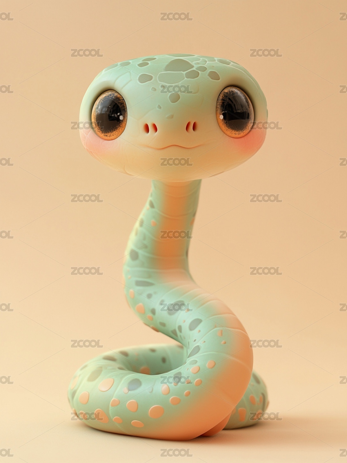 可爱卡通蛇年动物形象的吉祥物3D插画