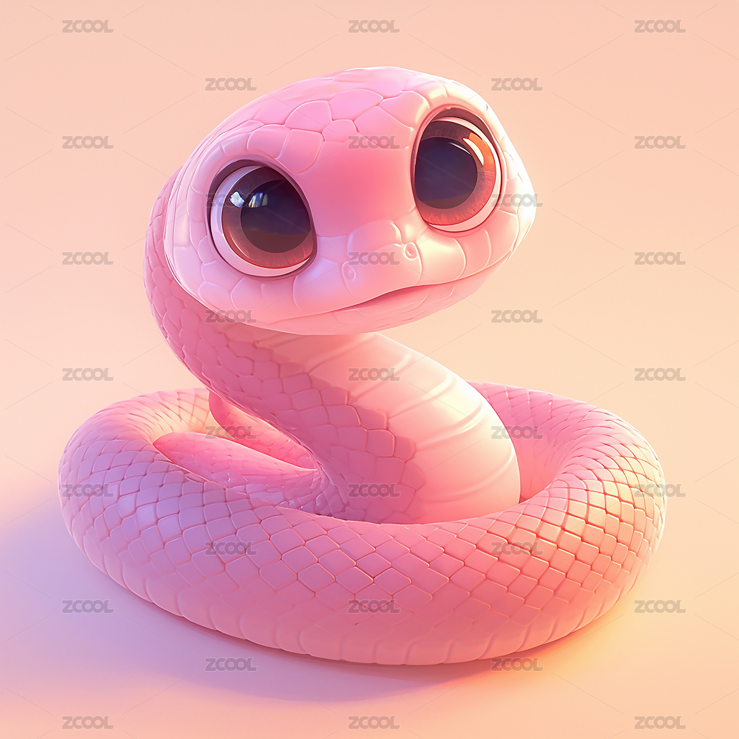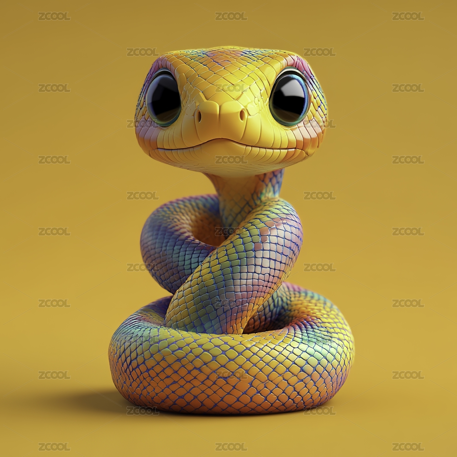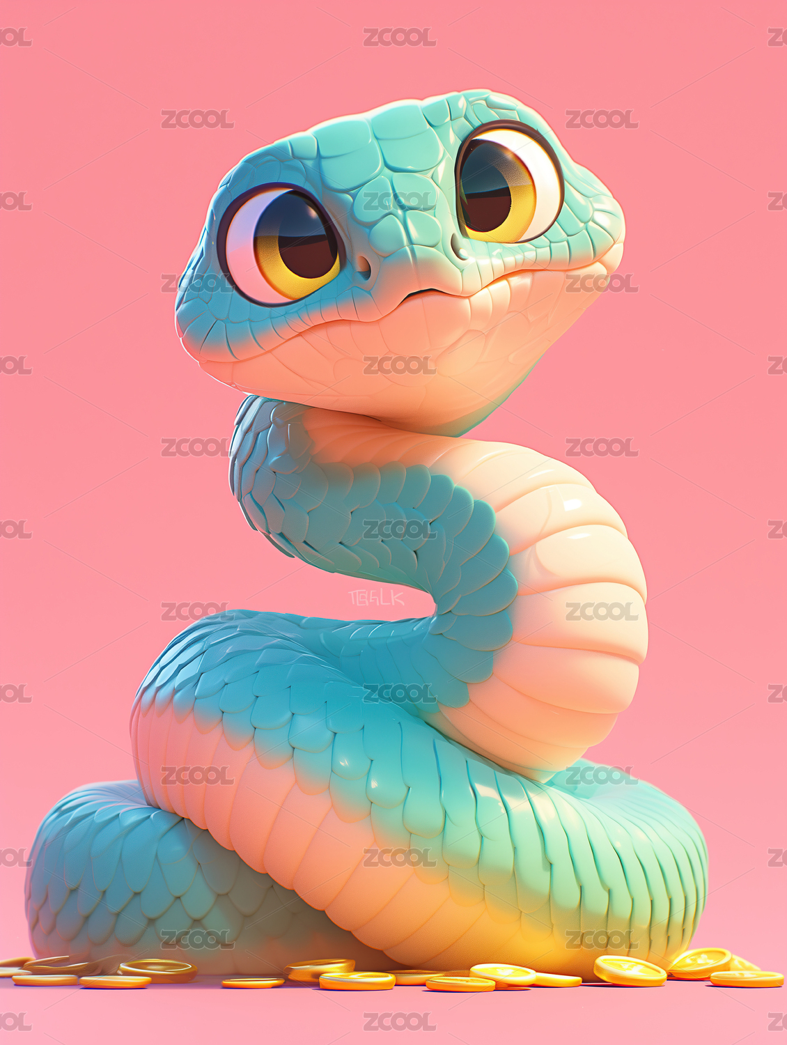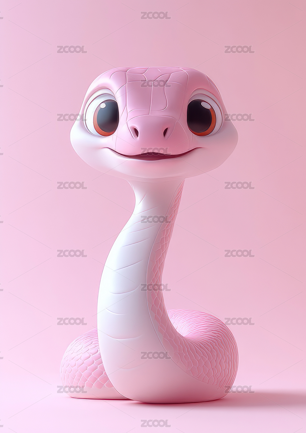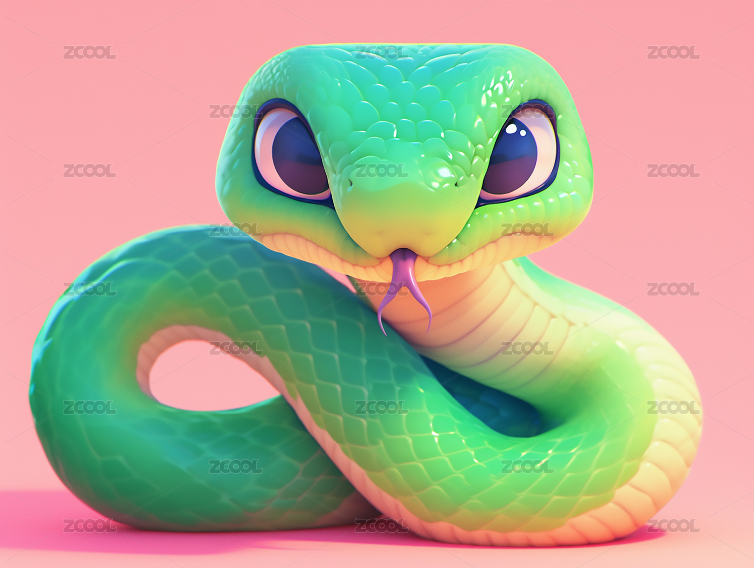 可爱卡通蛇年动物形象的吉祥物3D插画