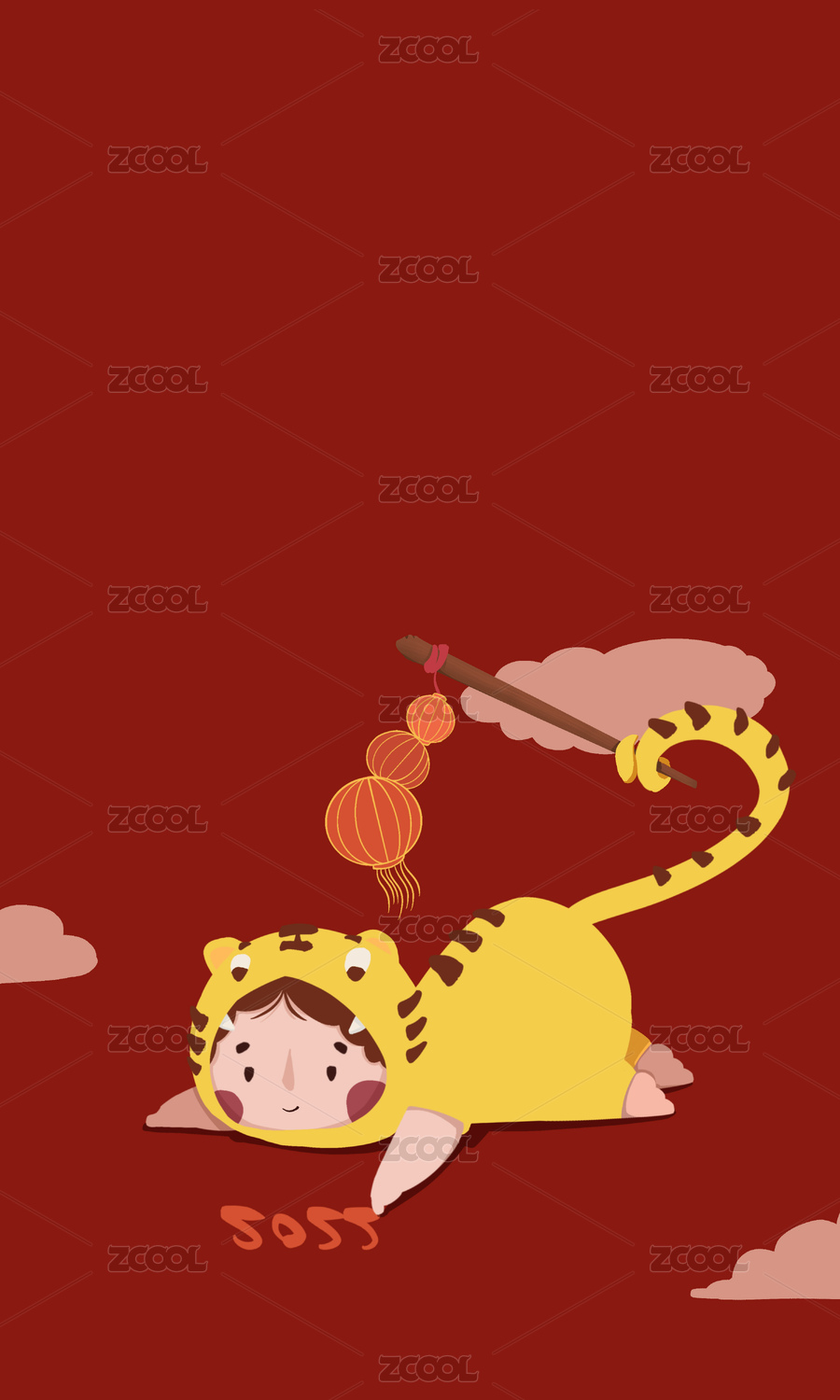 春节,老虎,可爱,动物,卡通,启动页,开屏页,竖版,海报,矢量