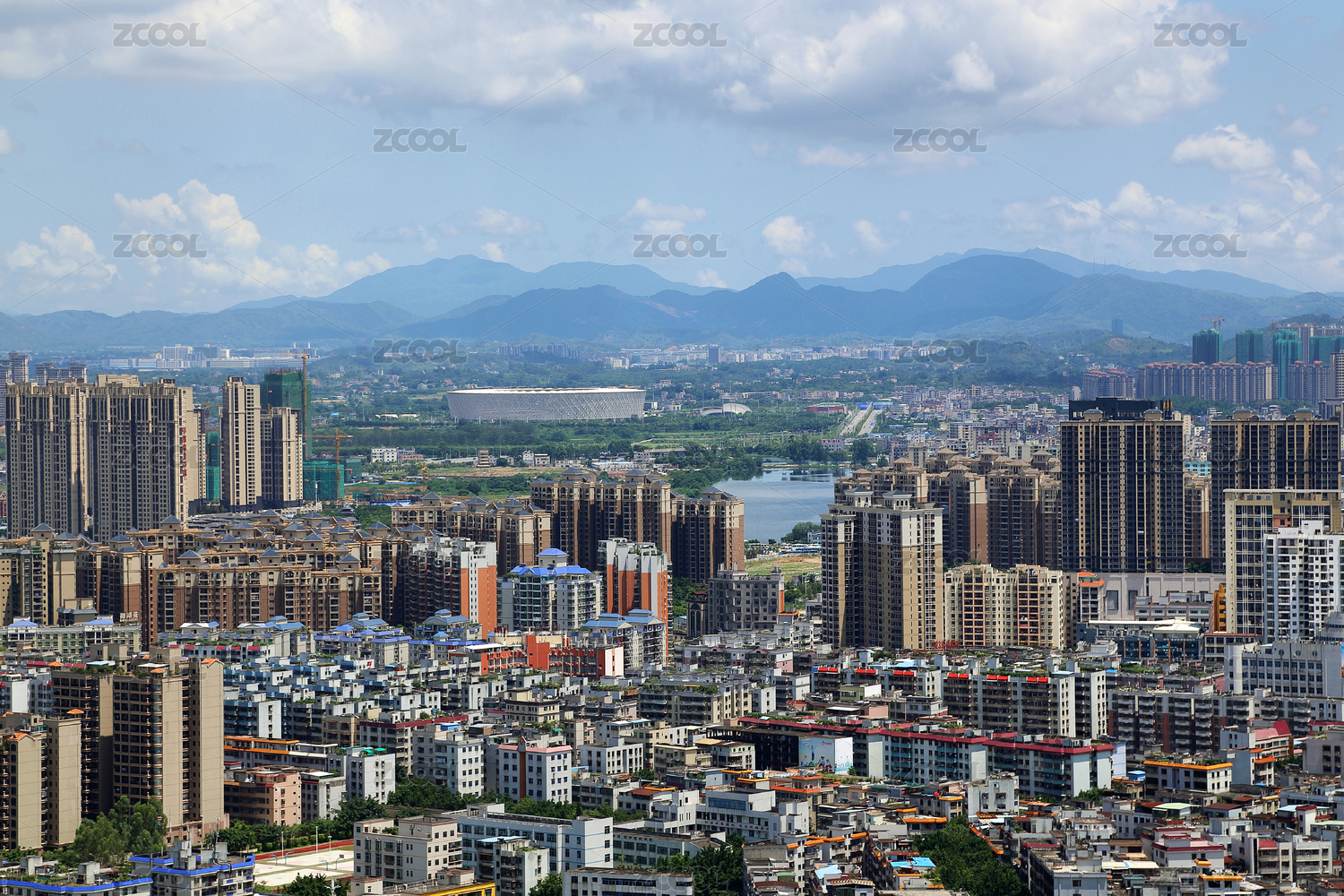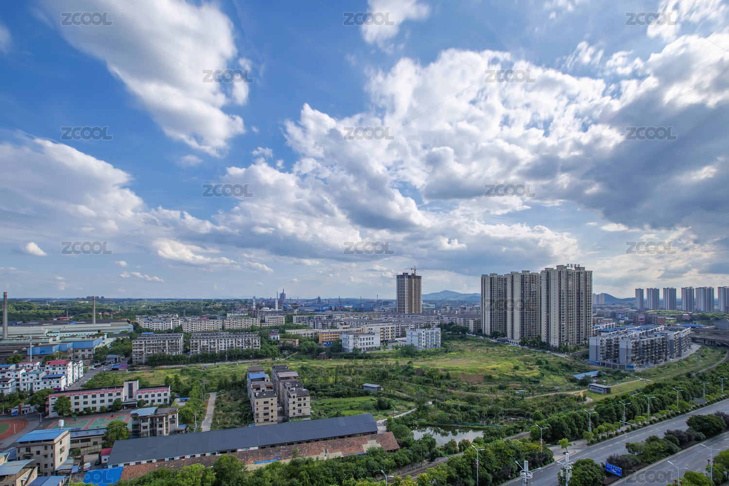 建筑群,城市,城镇,建筑外观,天空,蓝天,白云,云朵,云彩,无人