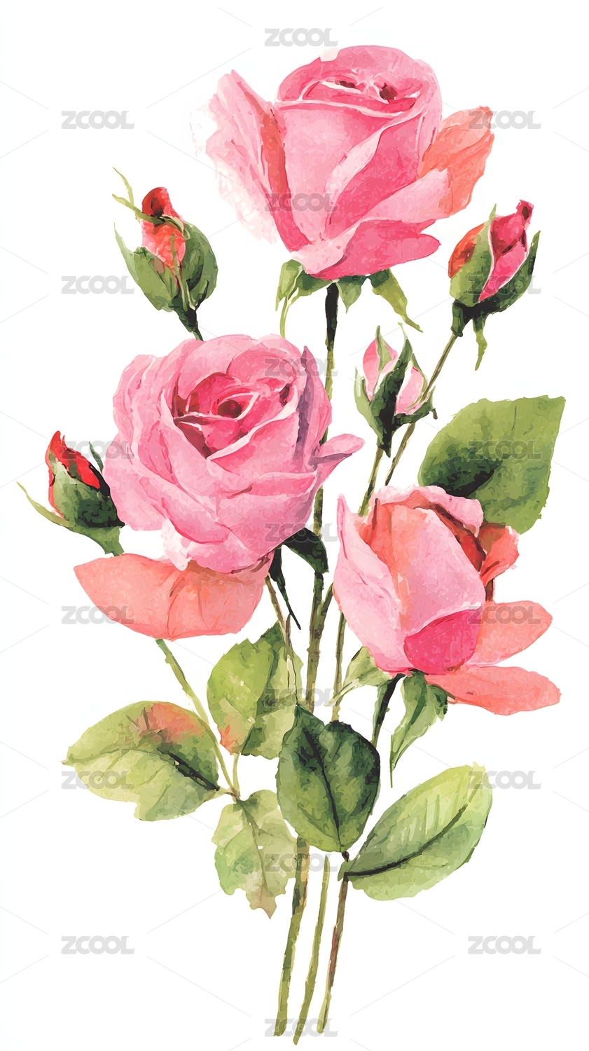 水彩玫瑰花绘图