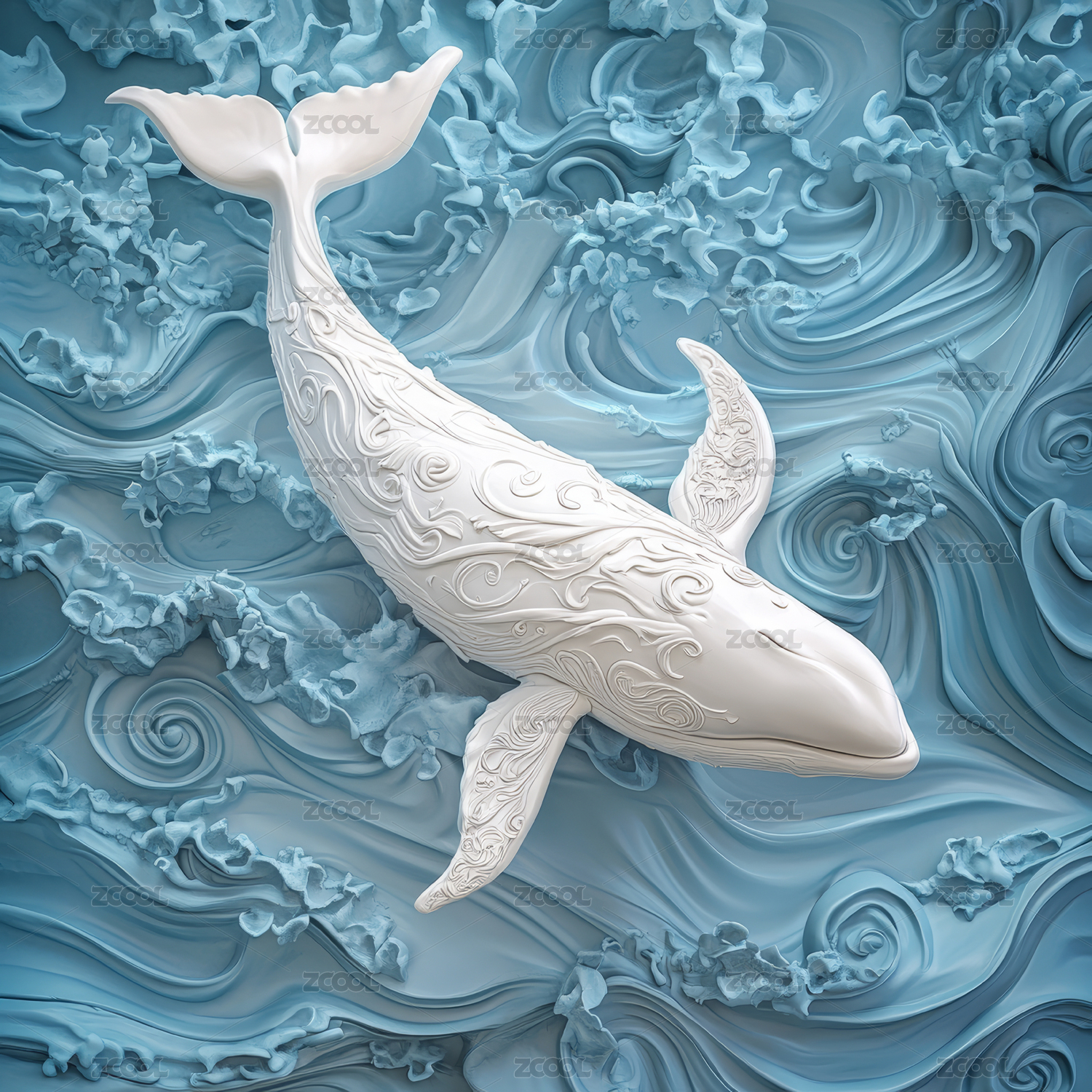 3d渲染的海里的鲸鱼