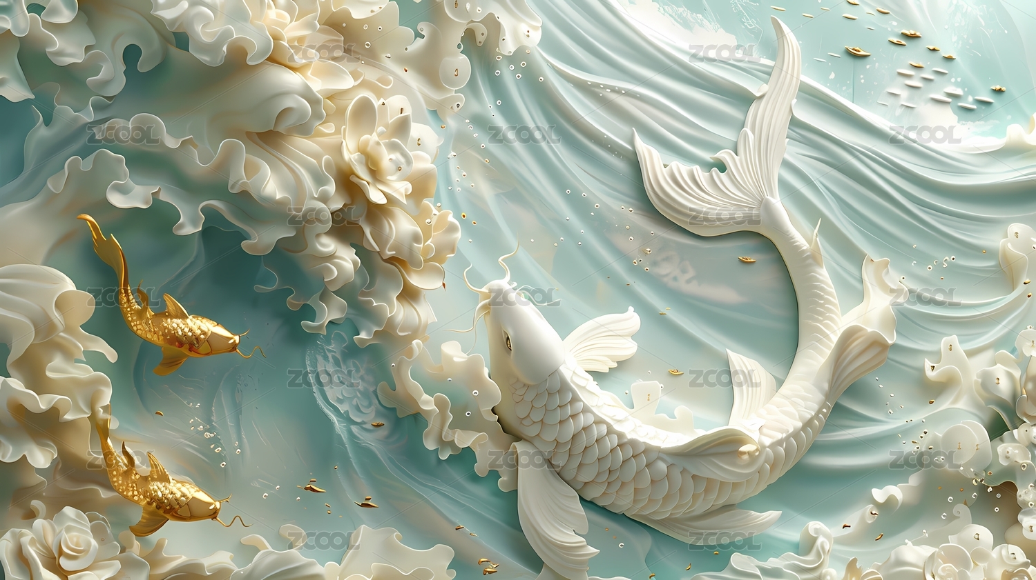 绿白金雕刻传统山水场景海报背景